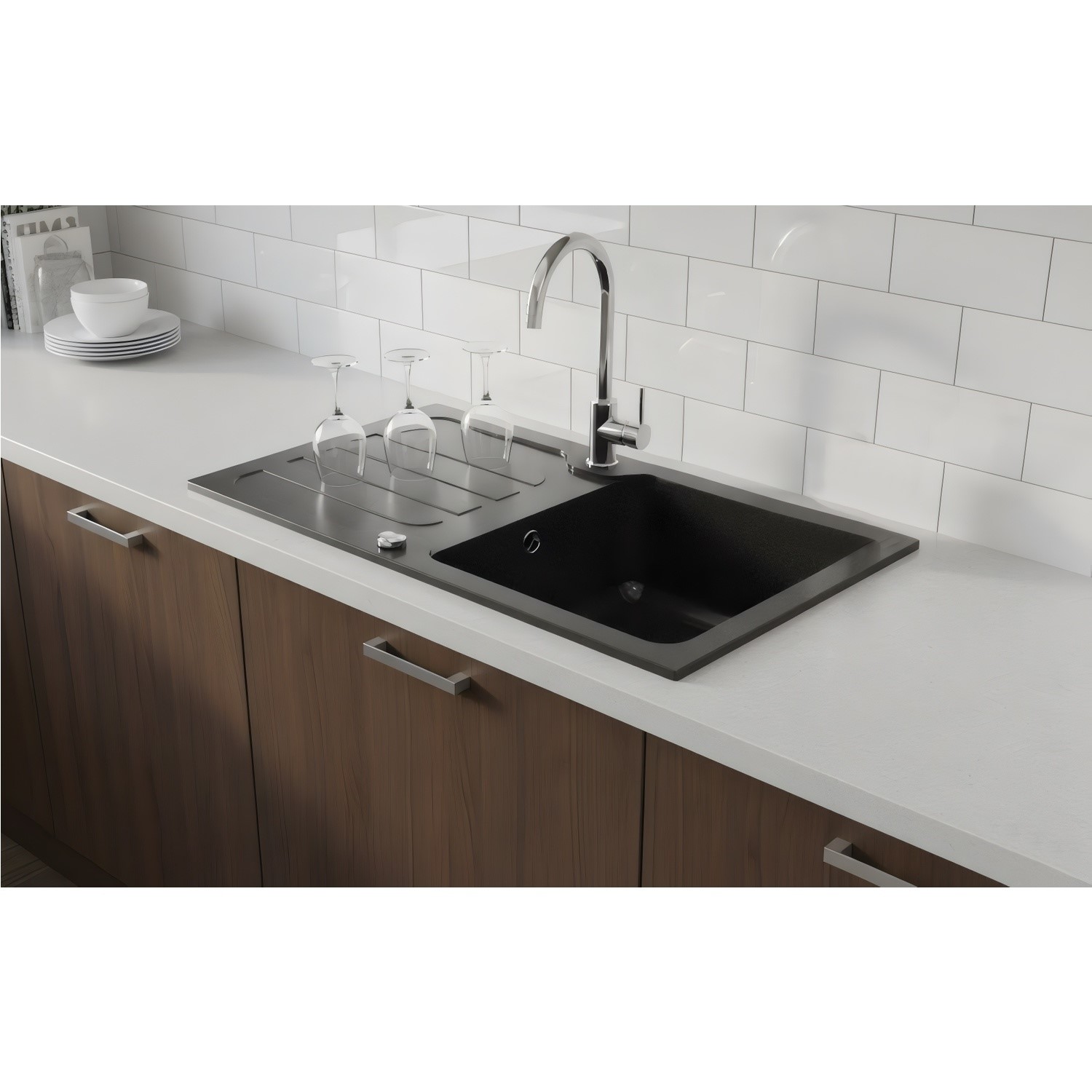 Granite composite sinks are highly resistant to heat, scratches, and stains, allowing you to place hot pots or wash up after cooking without worry. The surface is non-porous, preventing the absorption of liquids, bacteria, and odours. Keeping your kitchen cleaner and more hygienic. In addition to their practicality, these sinks are designed with elegant, stone-like finishes that bring a touch of luxury to any kitchen style, from sleek contemporary designs to classic interiors. Available in a range of natural hues, they pair effortlessly with a variety of worktops and colour schemes.