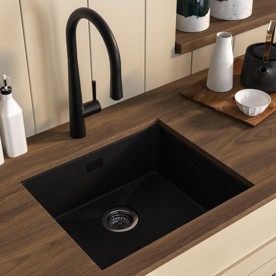 Designed specifically for small spaces, the sink features a smart, space-saving layout that maximises usability without compromising style. The deep single bowl provides ample capacity for washing tools, cleaning equipment, or handling household tasks, while smooth, contoured edges make cleaning effortless. A subtle matte finish enhances its modern aesthetic, seamlessly complementing any compact kitchen, laundry, or utility setup. Integrated soundproofing technology minimises noise during use, adding a premium touch of comfort.