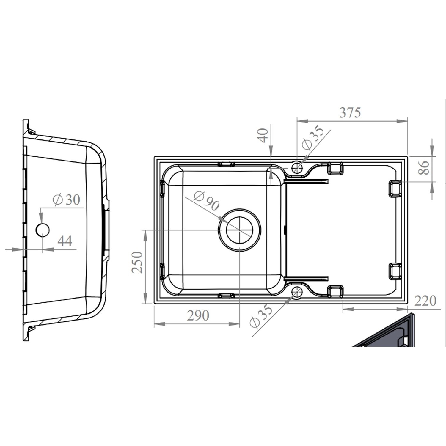 - Sink Material thickness: 12mm