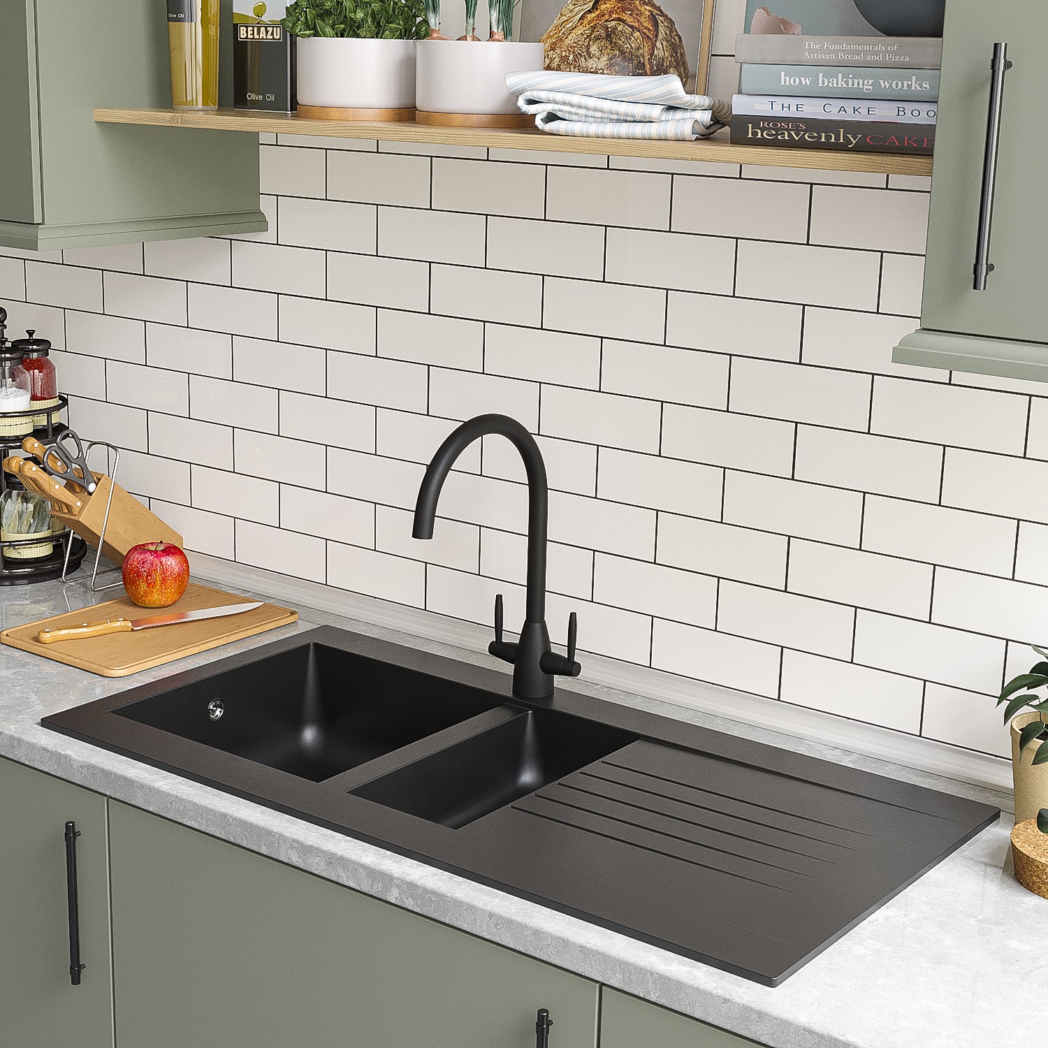 - Stylish matt black inset kitchen sink