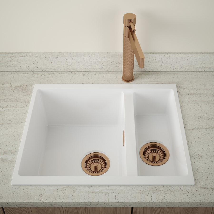 Upgrade your kitchen with this premium 1.5 bowl sink, thoughtfully designed to enhance both convenience and style. The versatile layout offers a spacious main bowl for everyday washing, complemented by a dedicated half bowl that’s perfect for multitasking—whether you're rinsing ingredients, draining pots, or keeping tasks separate for improved workflow. Crafted from fine fireclay, this sink delivers exceptional strength and long-lasting durability. Its non-porous gloss white finish not only adds timeless elegance but also makes maintenance effortless. The smooth surface resists stains, scratches, heat, and rust, ensuring your sink stays looking pristine even in busy family kitchens. For a seamless and stylish look, the sink includes coordinated waste and overflow components that blend beautifully with its modern design. Installation is flexible too—choose between undermount or inset fitting to suit your kitchen layout and style preferences. With a hygienic, easy-to-clean surface and the added reassurance of a 1-year warranty, this fireclay sink combines everyday practicality with premium quality, making it a smart and stylish addition to any home. |