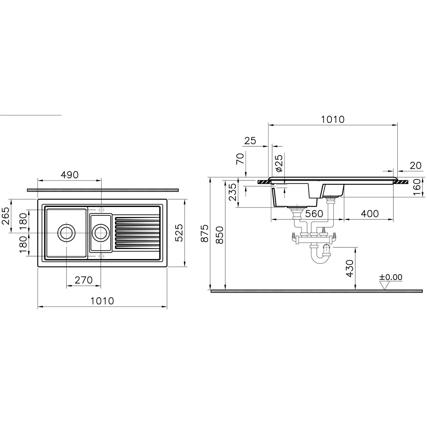 - Secondary Bowl Dimensions: D275 x W170 mm