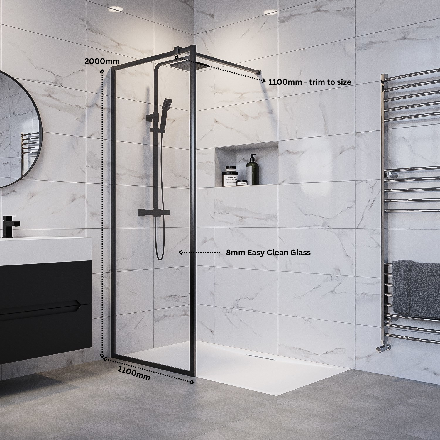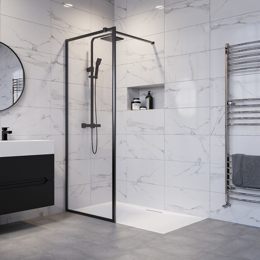 The Zolla black walk-in shower range is the ultimate wet room makeover and will give your bathroom the elegant appearance it deserves. It is available in a variety of sizes, with or without a return panel giving you plenty of options to suit your bathroom layout.