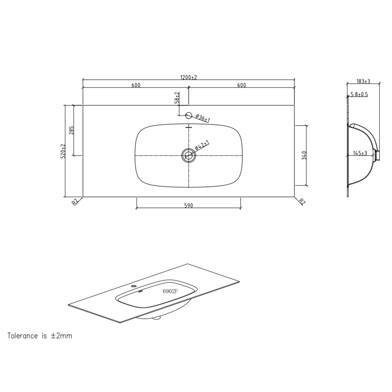 - Overall Dimensions: H 505 x W 1200 x D 520 mm (Please note the main footprint of this vanity is W 1190 x D 515mm – however the basin has a small overhang to slightly increase the overall dimensions)