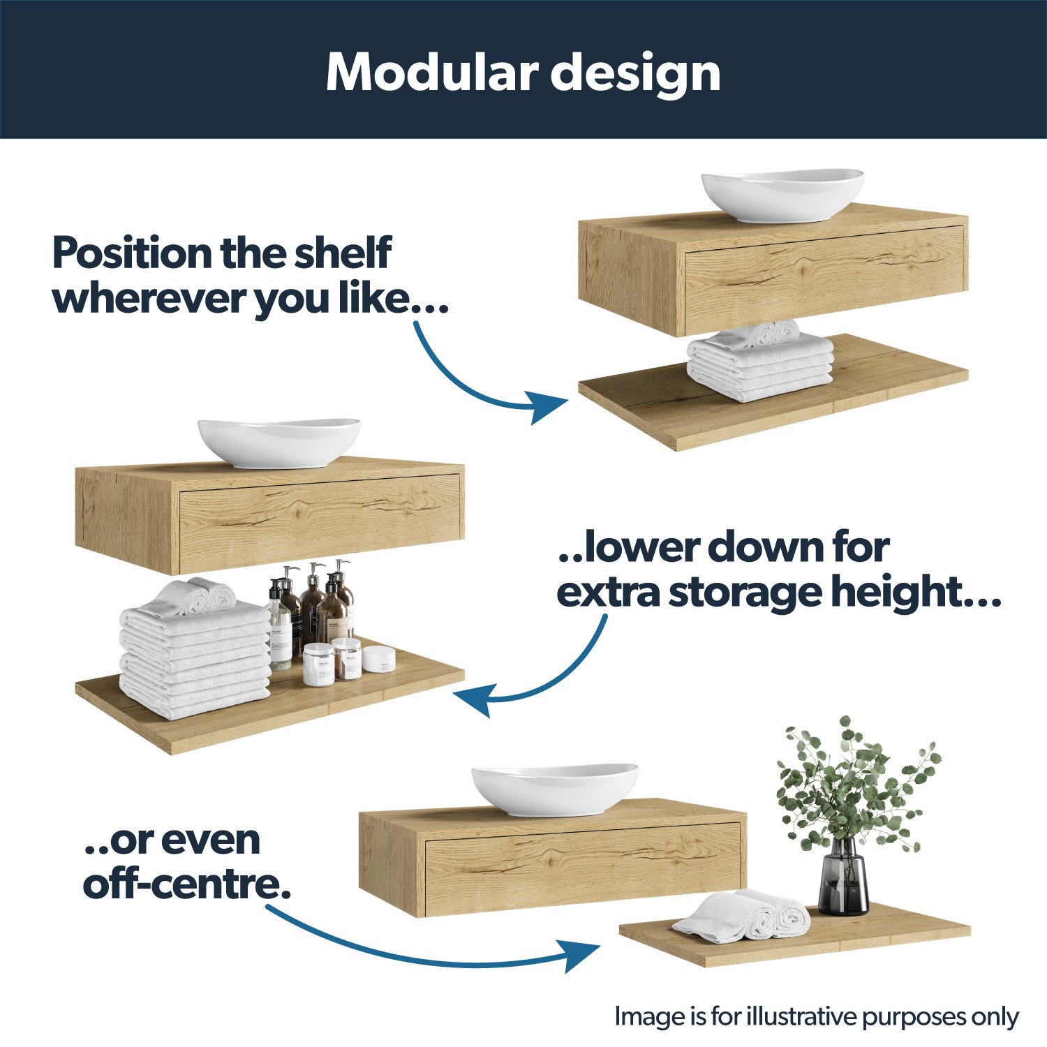 Open Shelf Display: Additional lower shelf provides convenient, accessible space for towels or decorative accents.
