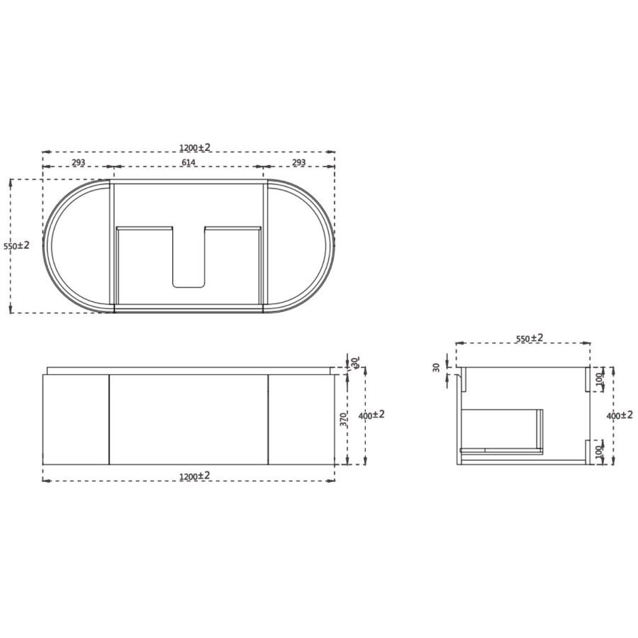 - Overall Basin Vanity Dimensions (including basin): H418mm x W1200mm x D550mm
