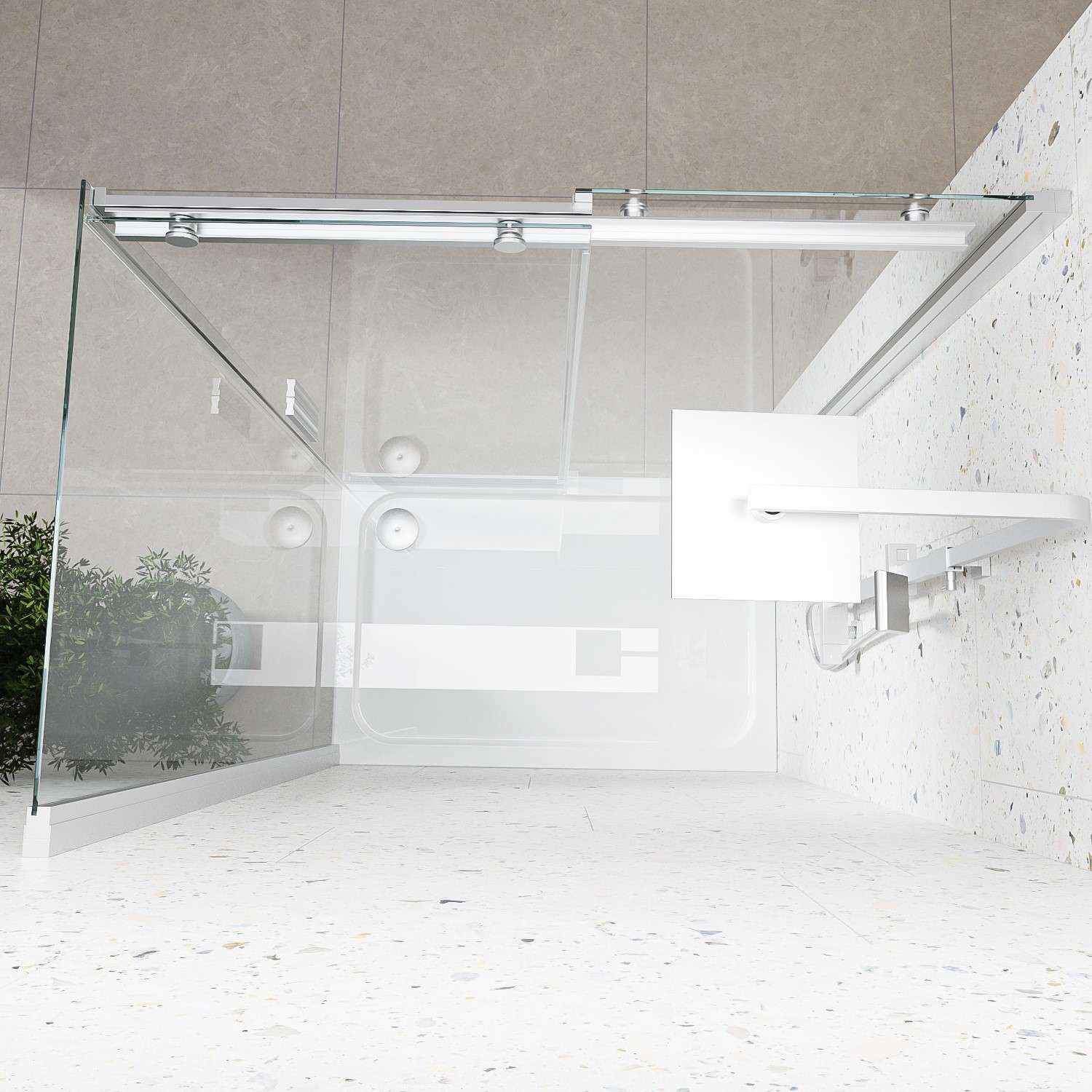 The frameless design creates the impression of space and light, making for a more relaxing shower, and its single sliding doors are easily accessible, saving space and fitting into small spaces. Its corner shower layout makes it perfect for ensuites and smaller bathrooms.
