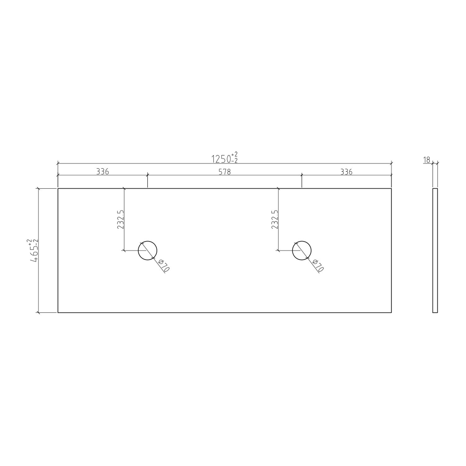 - Unit material thickness: 18mm