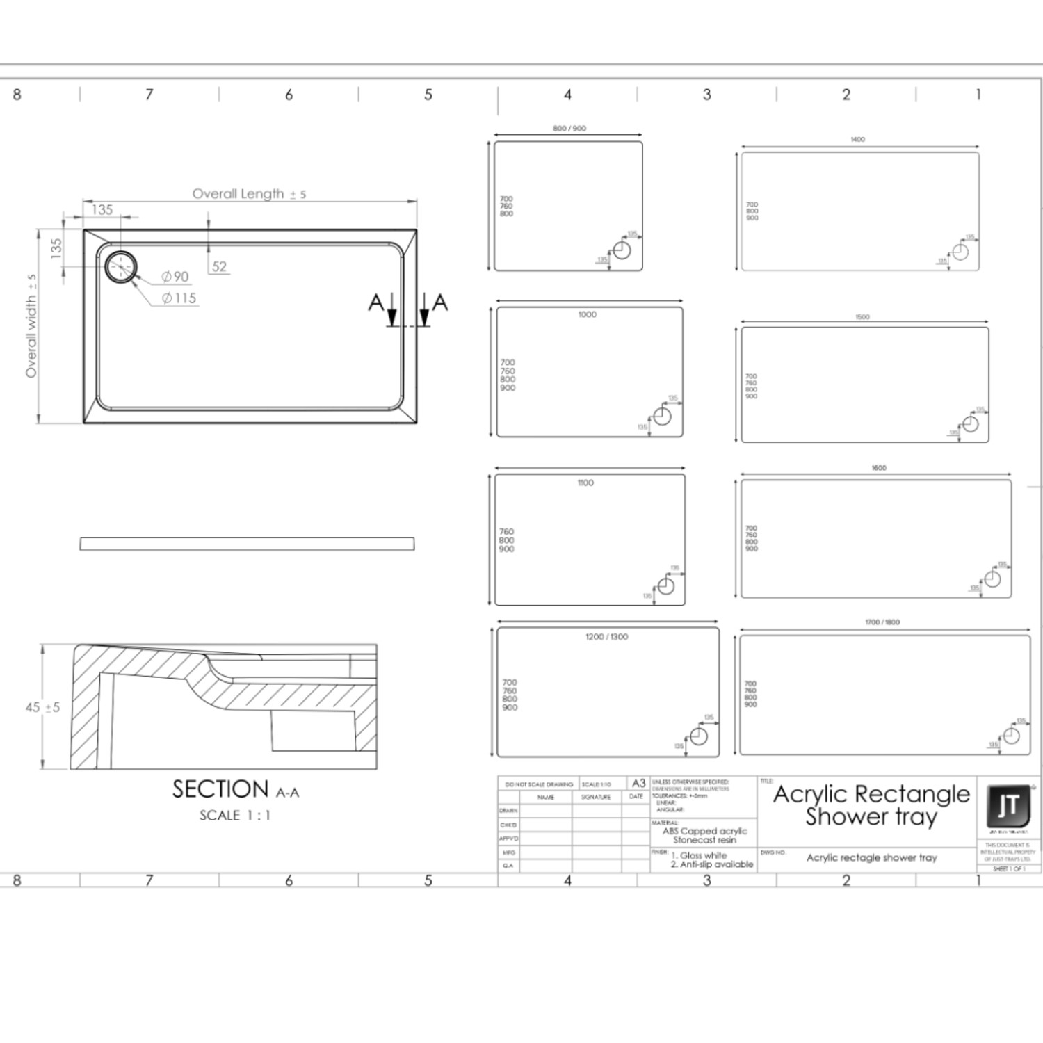 - Tray profile height: 45mm