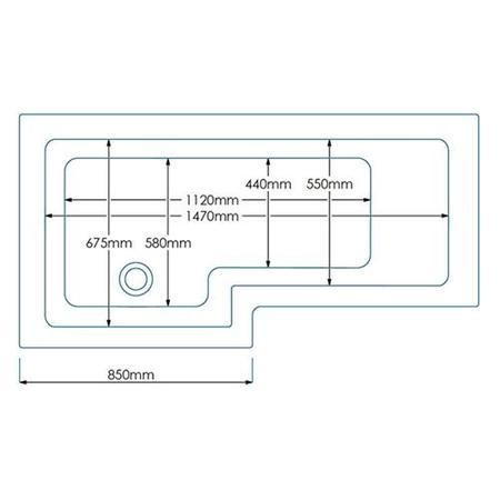 Left Hand L-Shaped Shower Bath - L1670 x W850mm