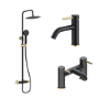 The matching basin and bath taps complete the perfect bathroom brassware set. Finished to a high standard, the PVD-coated brass sections and electroplated black sections ensure lasting colour, texture, and resistance to scratches.