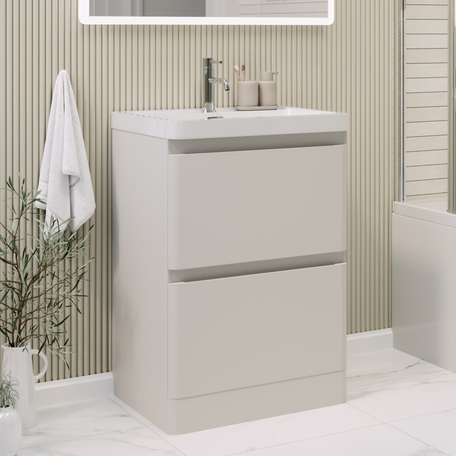 Give your bathroom a fresh, modern look with this sleek, beige 600mm floor-standing vanity unit from the Pendle range. Designed for modern living, it offers a contemporary, minimalist look while providing a sturdy, space-saving solution.