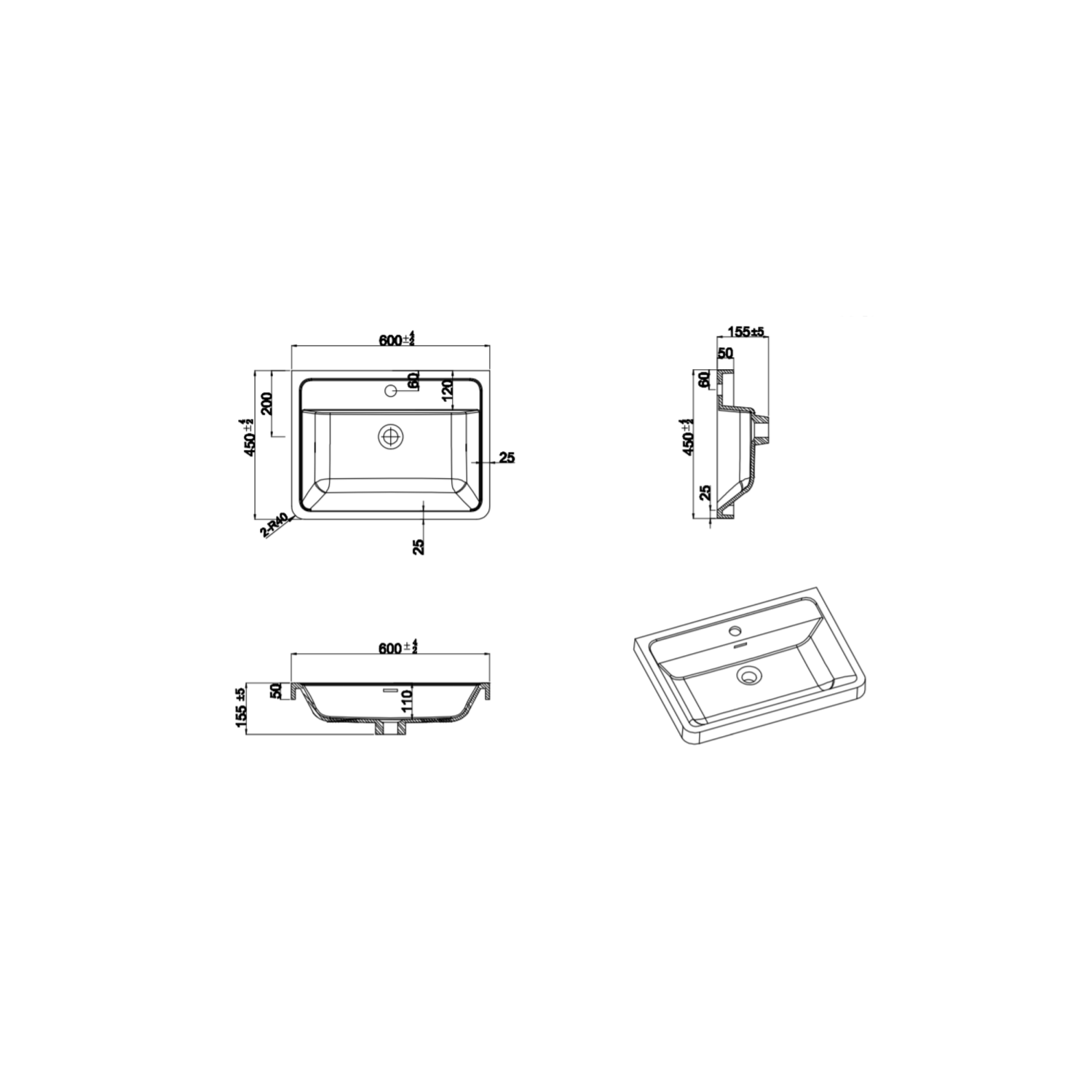 - Basin material: Resin