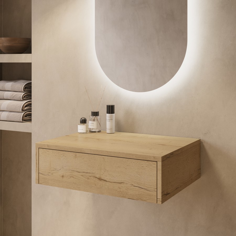Integrated Drawer Storage: Features a discreet, soft-close drawer perfect for storing toiletries and bathroom essentials.