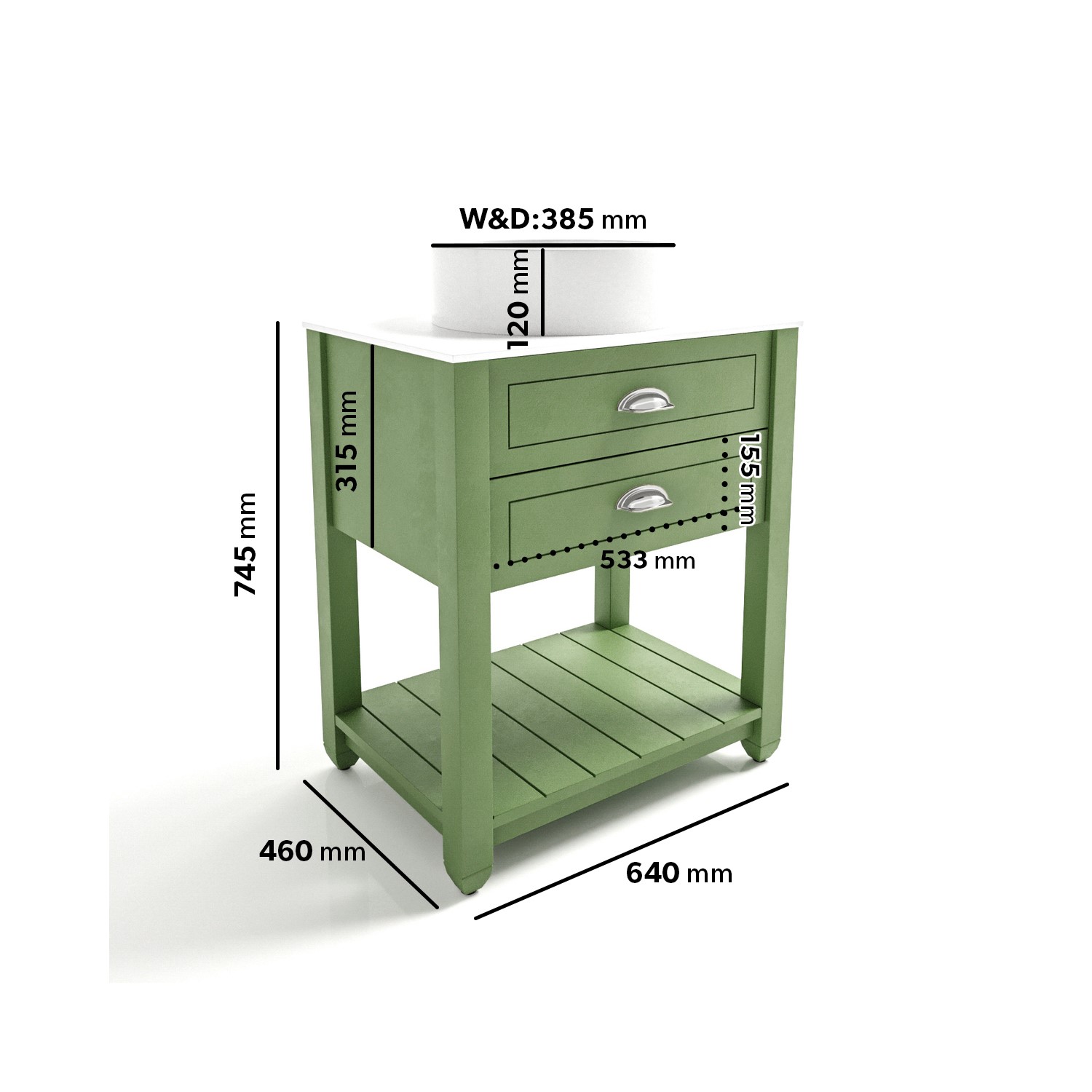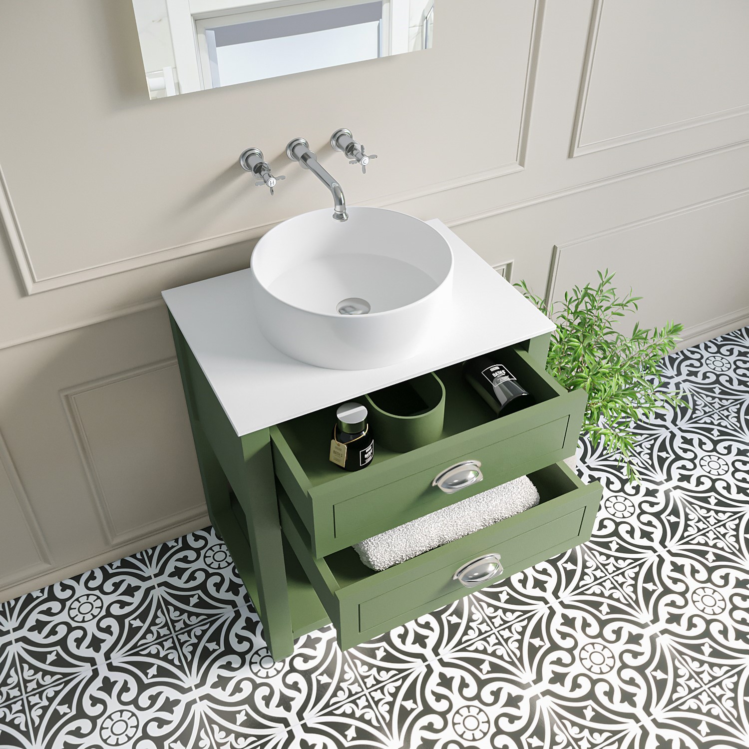 - Rustic sage green vanity unit finished in a matt for a modern twist