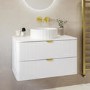 Give your bathroom an instant update, plus make the most of your bathroom floor space with this gorgeous vanity unit which includes the fluted countertop basin. The curved ribbed unit in matt white features two wide drawers, each with a sleek curved lip handle, plus they have a soft-closing mechanism to prevent slamming and wear and tear.