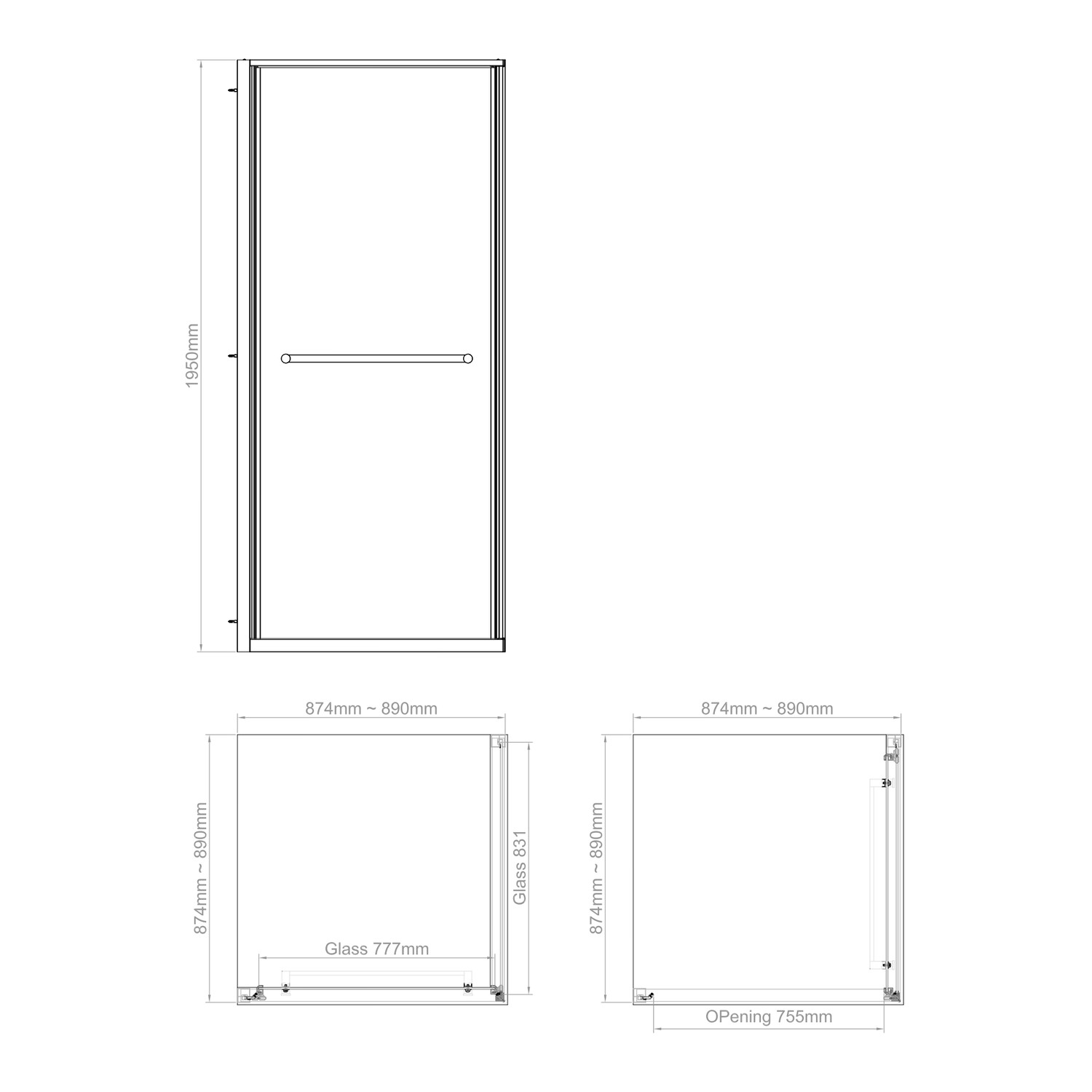 - Dimensions: H1950 x W900 x D900 mm