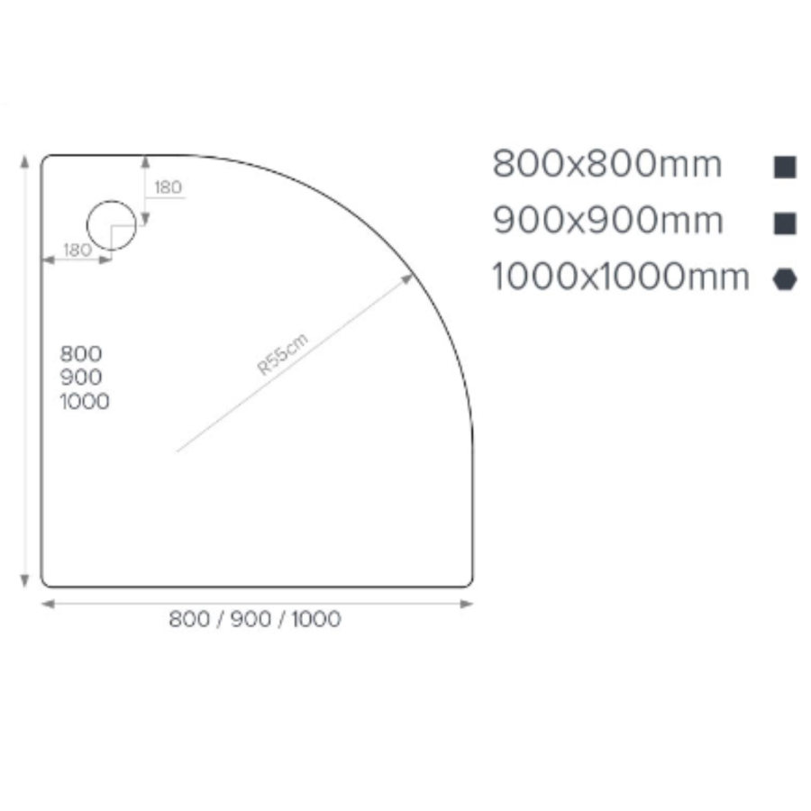 90mm waste required-corner waste position for a pleasant showering experience, for more information about this tray please see our dimensions and specifications section.