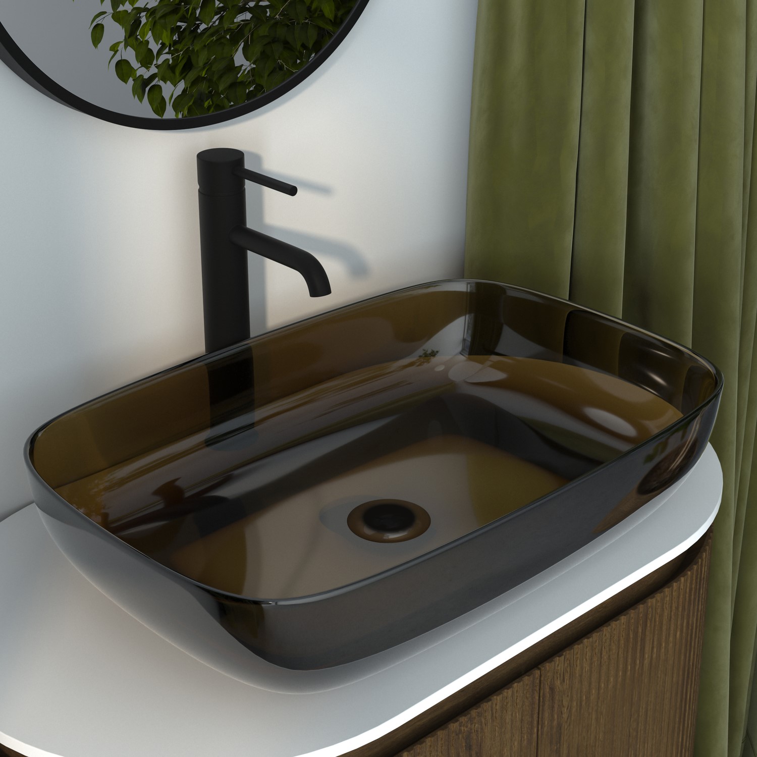 Sophisticated Design: With its crystal-clear transparent resin material and perfectly balanced silhouette, this countertop basin delivers a strikingly modern aesthetic. The luminous amber surface captures and reflects light, creating an elegant, sculptural centrepiece that elevates contemporary bathroom interiors.
