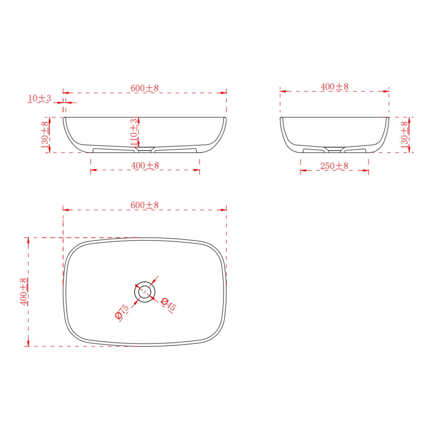 - Overall dimensions: H130 x W600 x D400mm