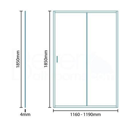 Aqualine™ 4mm thick glass sliding shower door adjustable between 1160mm and 1190mm and 1850mm in height.