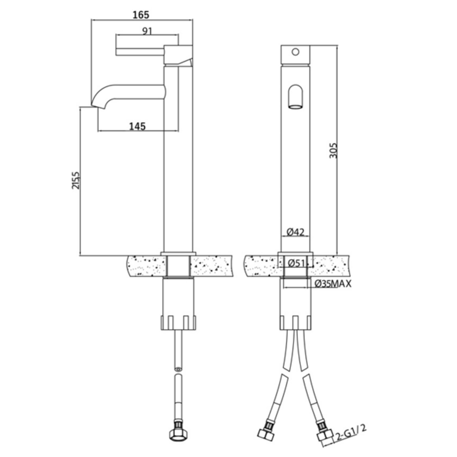 - Dimensions: H305 x W51 x D165 mm