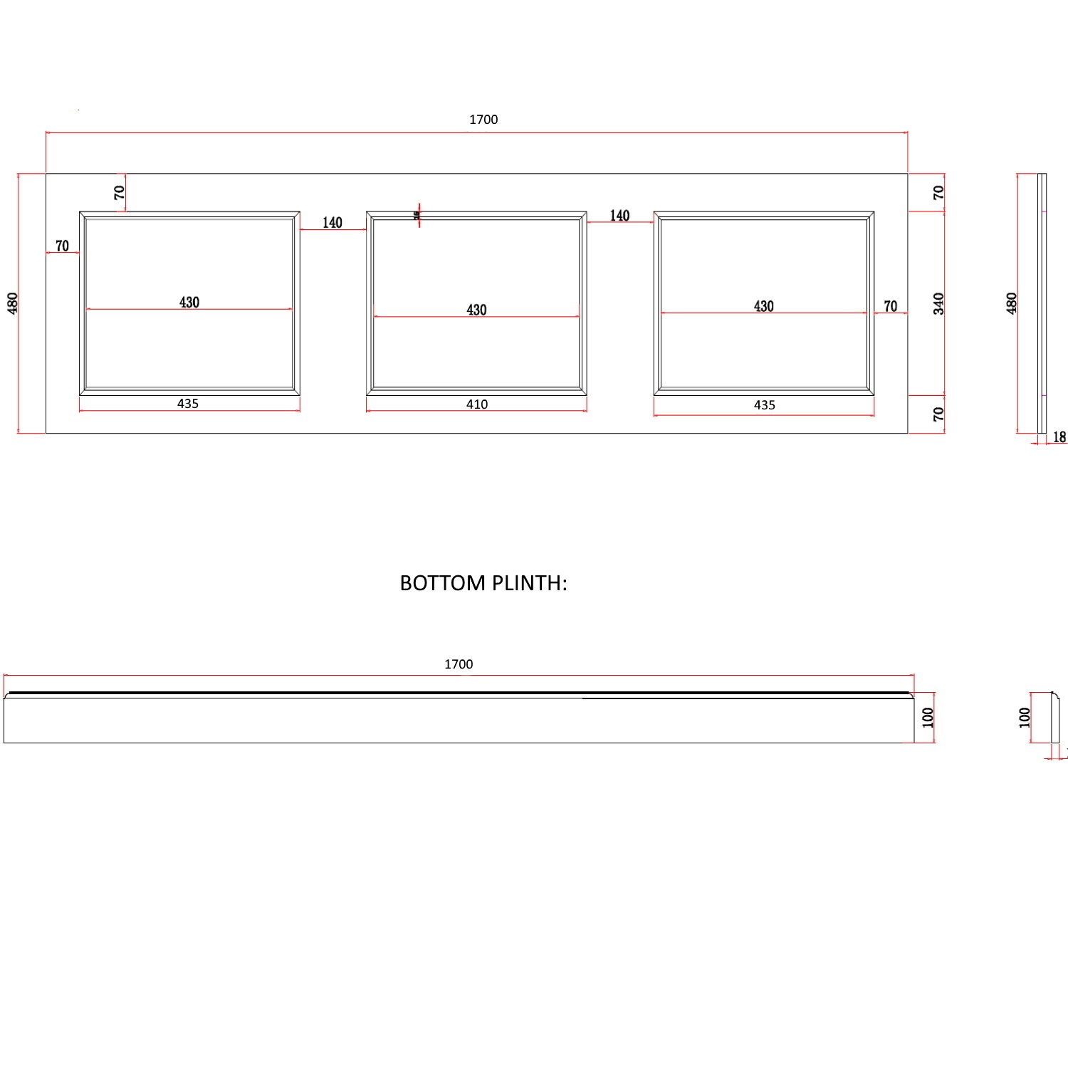 - Dimensions: L1700 x D18 x H580 mm