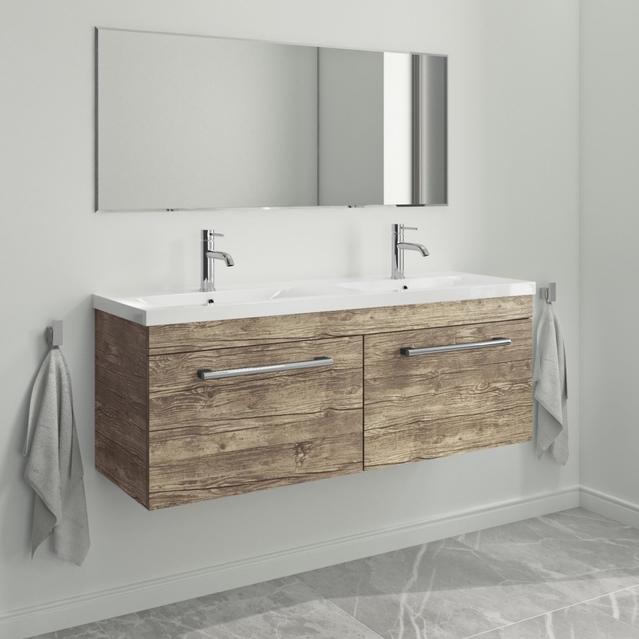 - Modern and clean wood effect finished double vanity unit