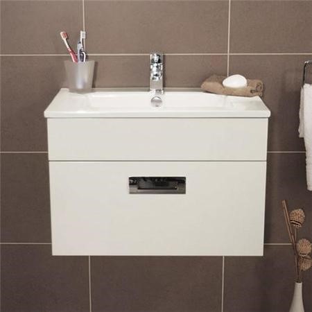 The Aspen™ Compact 600 wall mounted 1 drawer vanity unit. A fantastic and unique range of bathroom furniture the Aspen™ Compact range is designed with a short projection making it ideal for any modern bathroom including small bathrooms and cloakroom bathrooms. This 600 wall mounted unit has 1 soft close drawer for storage chrome finish handles and a high quality ceramic basin.