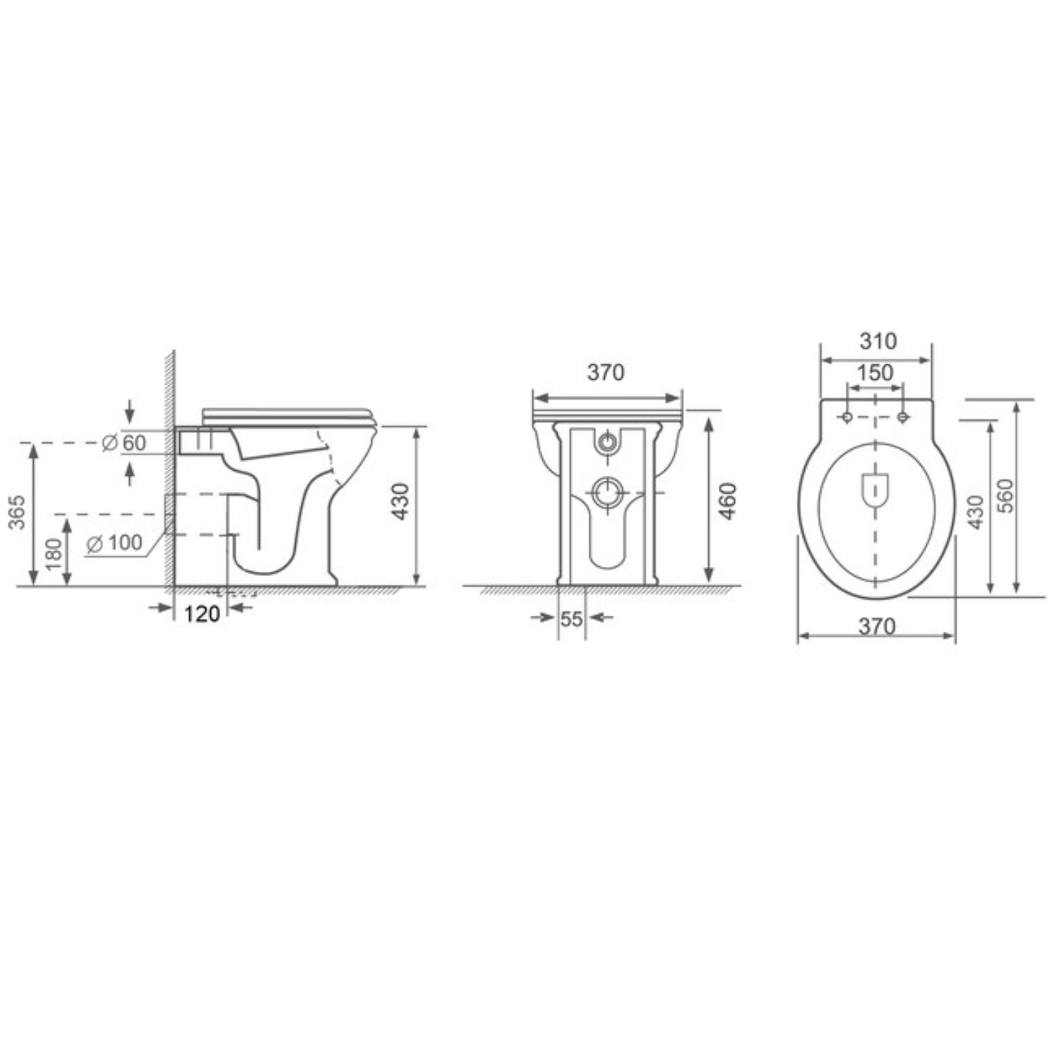 This Ripley back to wall toilet with a round pan traditional design has been manufactured from high-quality ceramic and makes a perfect addition to any bathroom. Thanks to the rimless design when you flush, the water is propelled around the bowl to give it a more thorough clean, it’s also more hygienic. This Ripley back to wall toilet with a uniquely shaped traditional design has been manufactured from high-quality ceramic and makes a perfect addition to any bathroom. A back to the wall toilet is the perfect purchase for those who are limited for space in their bathroom. The cistern is cleverly concealed behind the pan by hiding it behind a unit or wall, thus making the toilet flush to the wall, meaning you won’t have to comprise floor space when installing the toilet. It comes complete with a soft-close toilet seat, this seat adds a touch of quiet comfort, reducing noise and wear over time. The durable construction ensures long-term performance, while the sleek white finish keeps your bathroom looking fresh and clean. The matt black hinges add a premium feel to the toilet and match the rest of your bathroom theme.