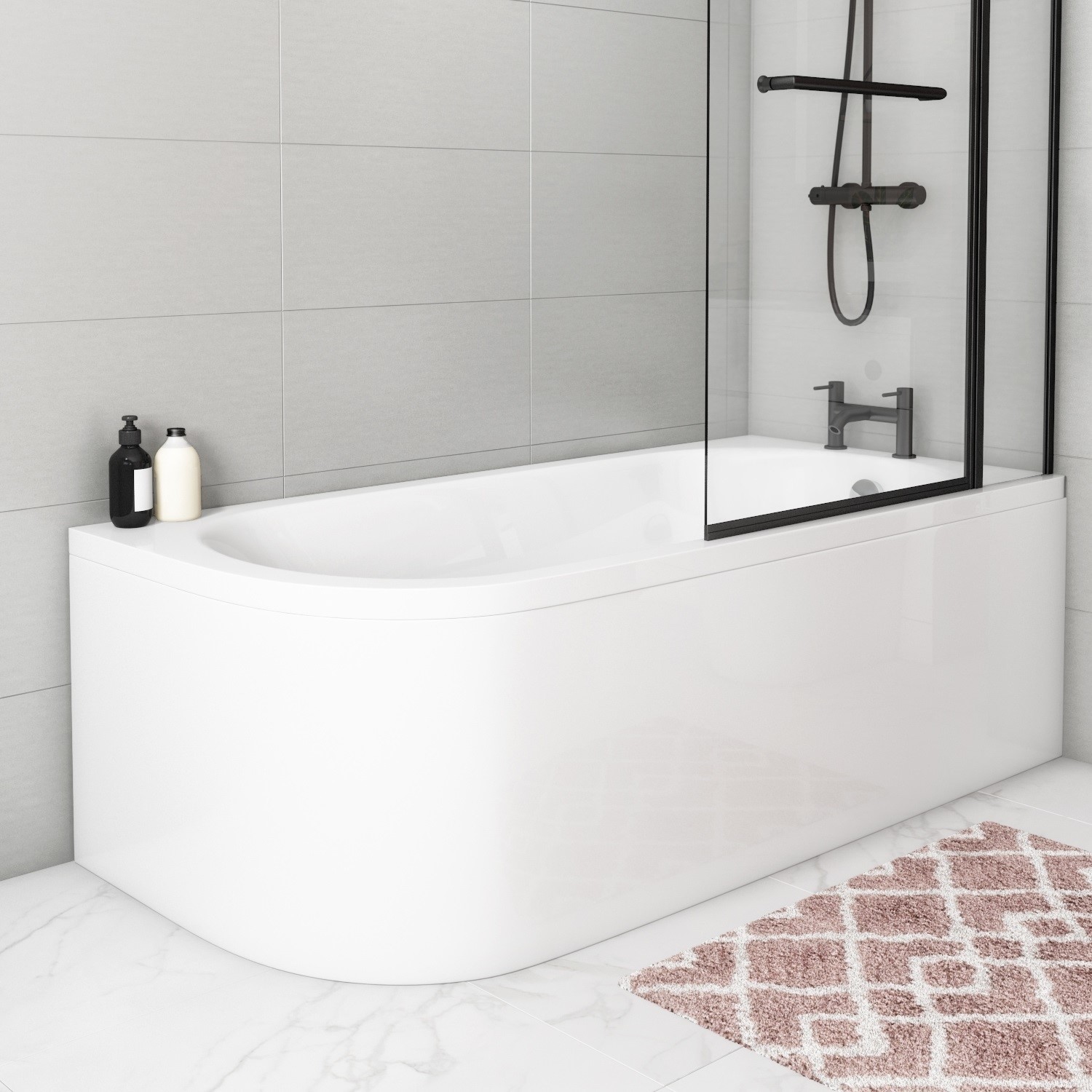Designed with modern bathrooms in mind, the J shape bathroom suite is ideal where space is limited but style is essential. Introducing the stylish J shaped acrylic bath, this stylish and practical bath is ideal for bathrooms where space might be limited. This single ended bath features a curved corner end for ease of movement around the end of the bath. The bathtub comes with a pre-drilled waste and overflow holes, and also includes a set of bath legs and matching curved acrylic bath panel.
