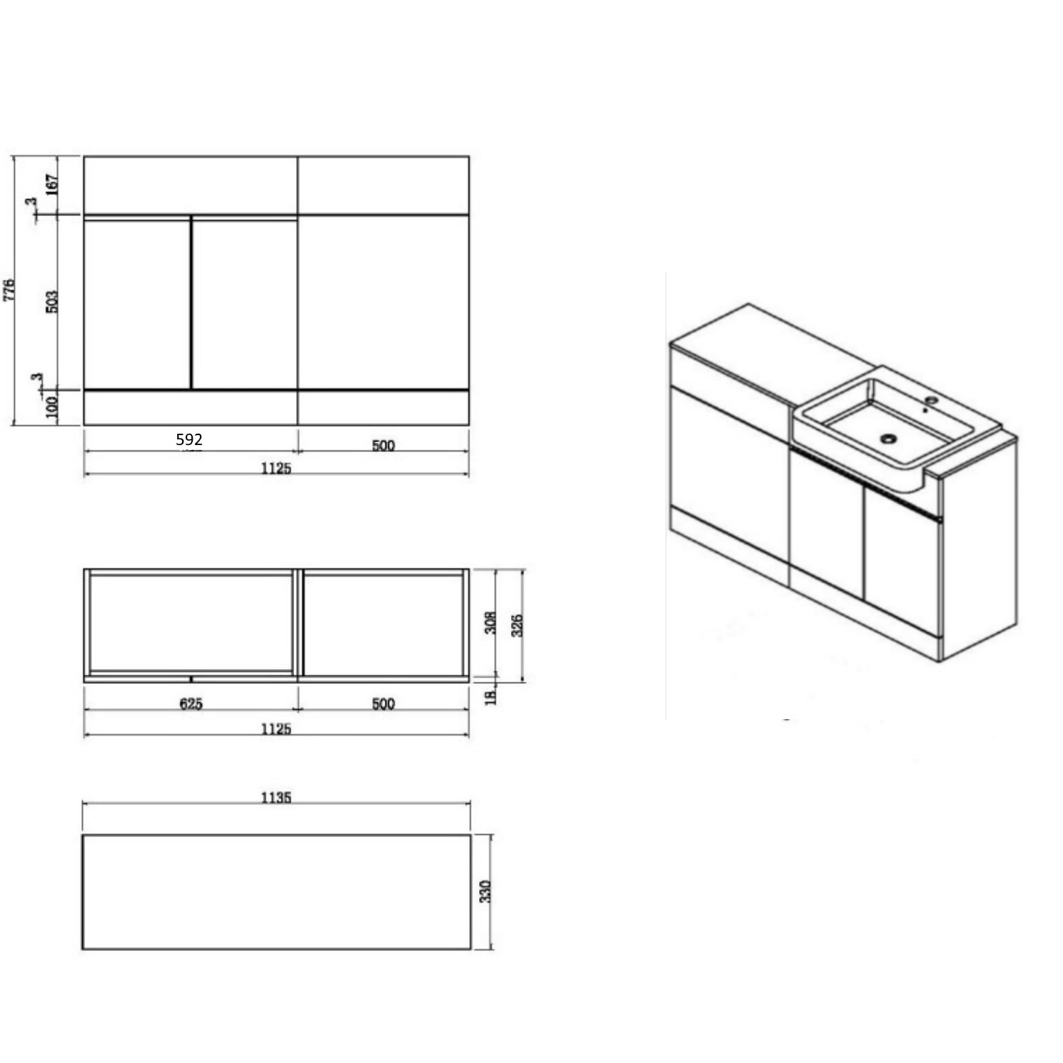 - Vanity unit dimensions: W625 x D325 x H775 mm (give or take -/+ 3mm per measurement)