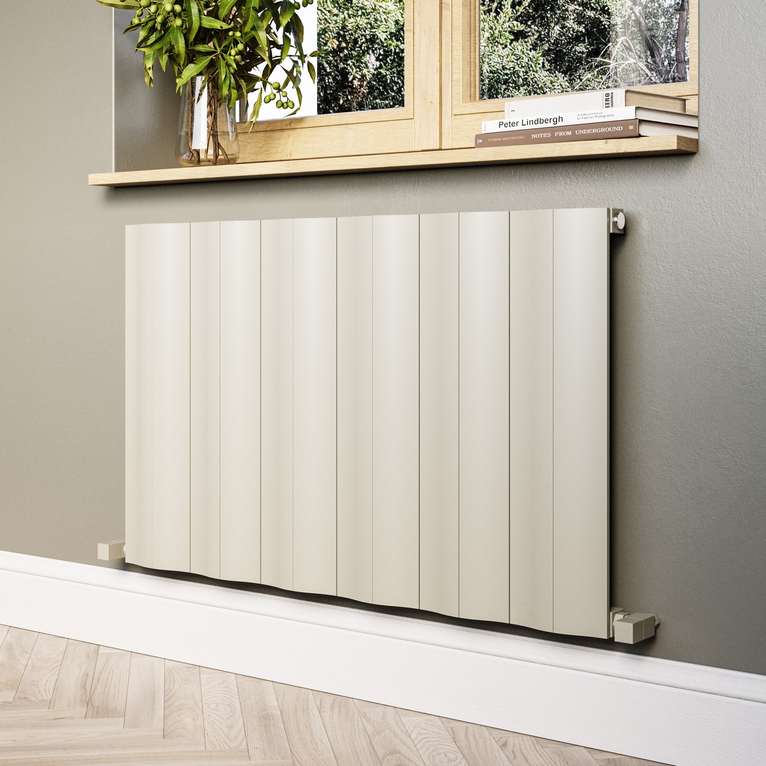 This Horizontal Beige Wave Radiator offers a sleek and modern solution for heating your space. With its compact horizontal design, it's ideal for placement under windows or in areas where wall height is limited. This radiator boasts a subtle wave pattern and a versatile beige finish, blending seamlessly into any décor.