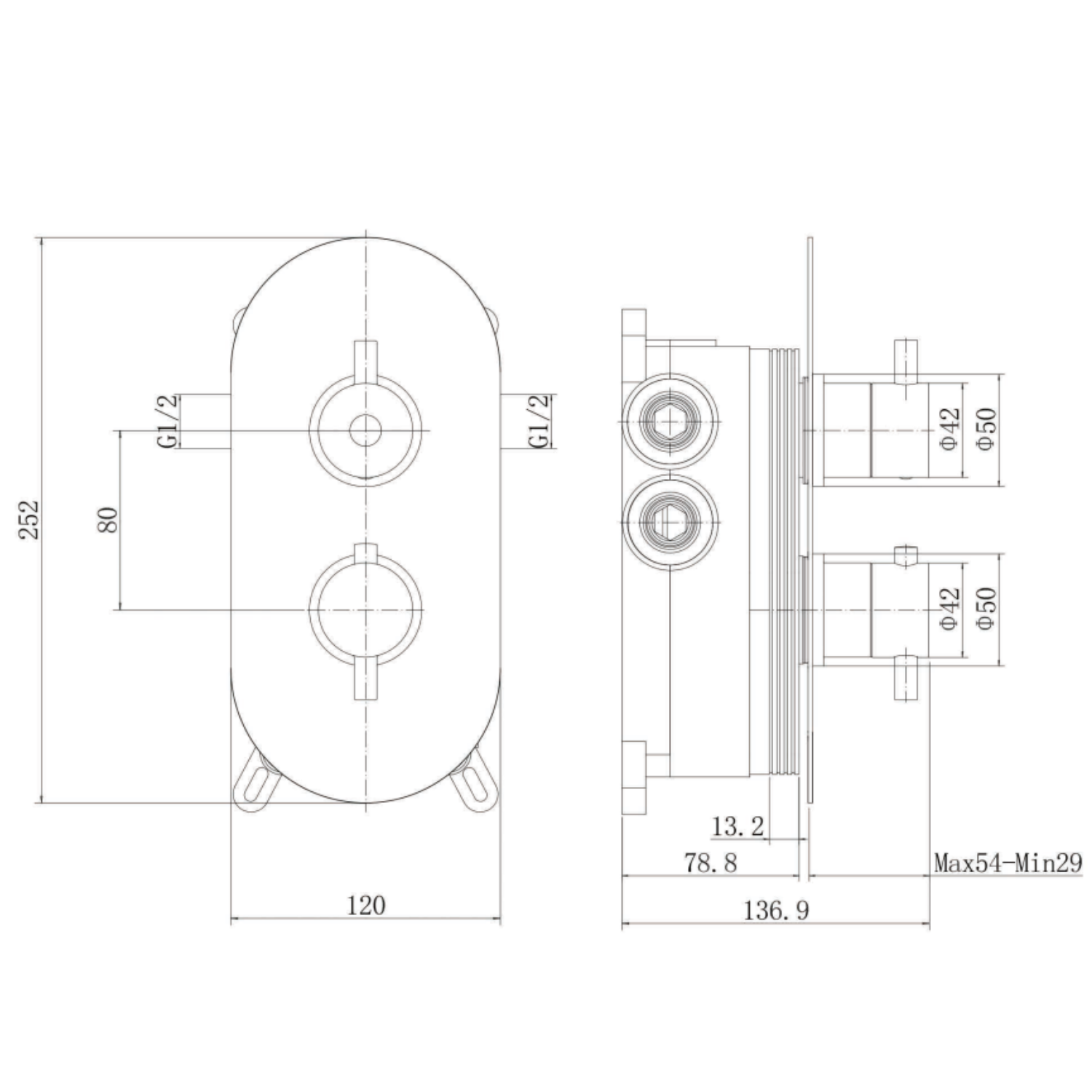 - Overall Dimensions: H252mm x W120mm x D136.9mm