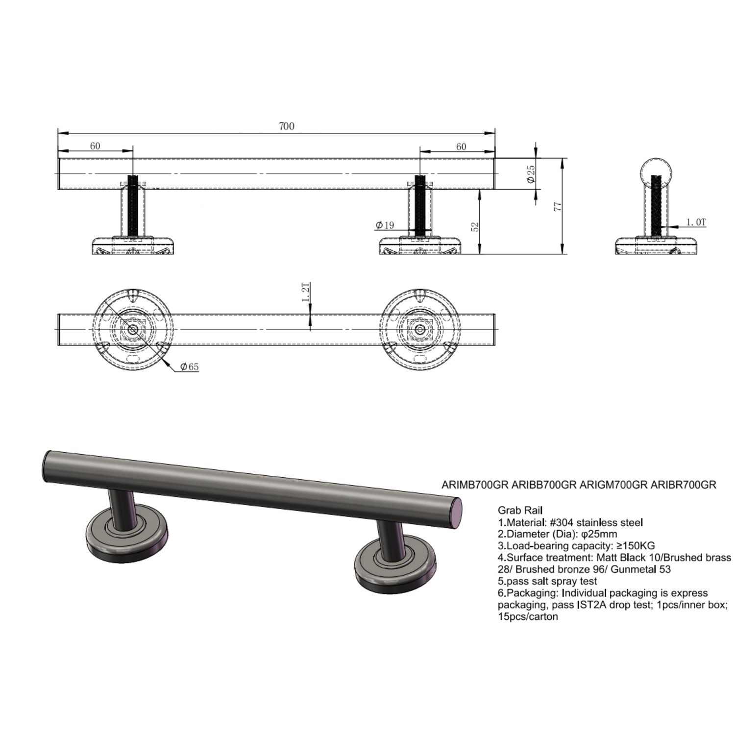 Safe & Strong: Supporting loads of up to 150kg, this grab bar gives reassurance and practicality for everyday use.