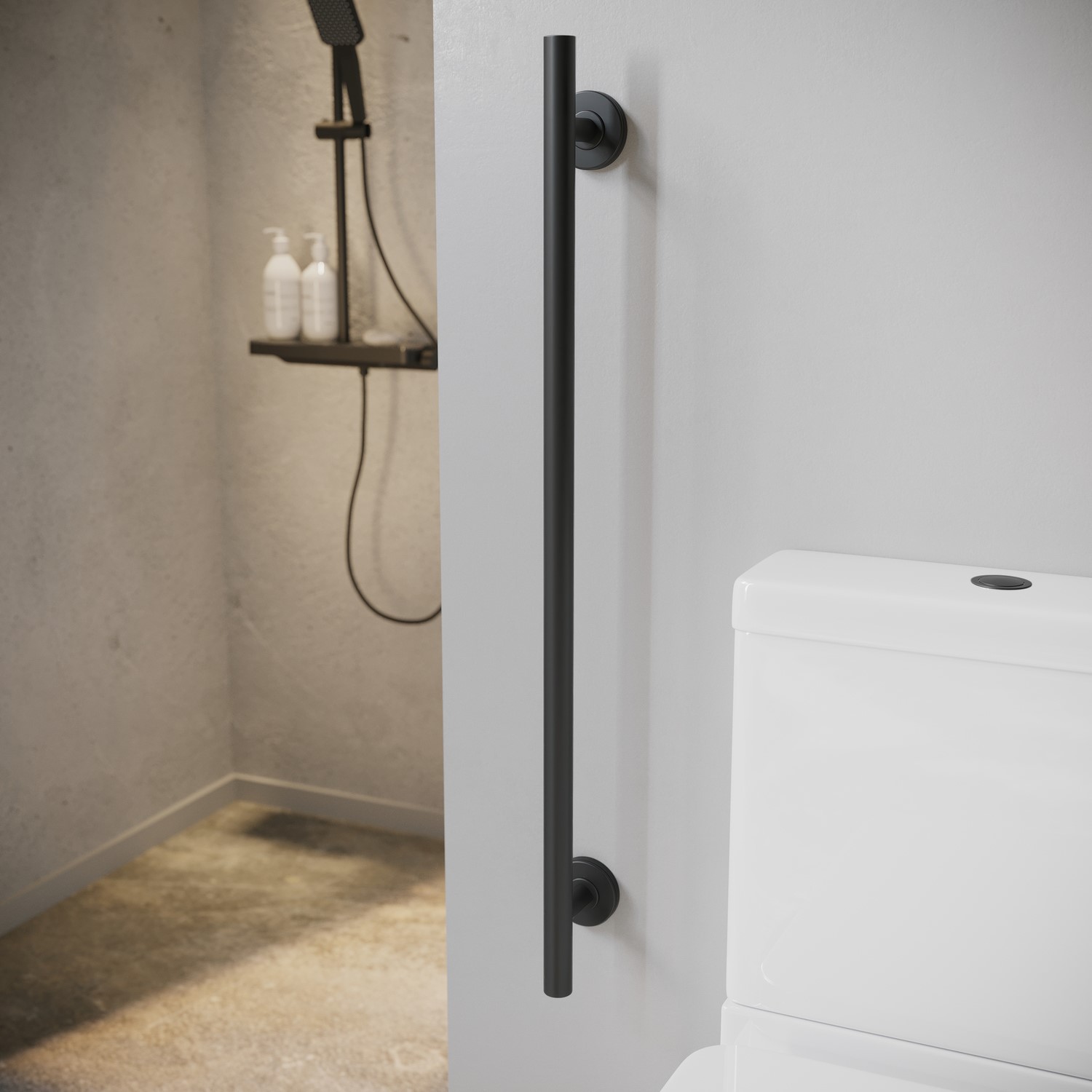 Made from robust stainless steel with a powder-coated matt black finish, it offers excellent durability and corrosion resistance. The powder coating process provides a hardwearing surface that withstands moisture and daily use, while the discreet modern design blends seamlessly into your bathroom, offering reliable support exactly where you need it most.