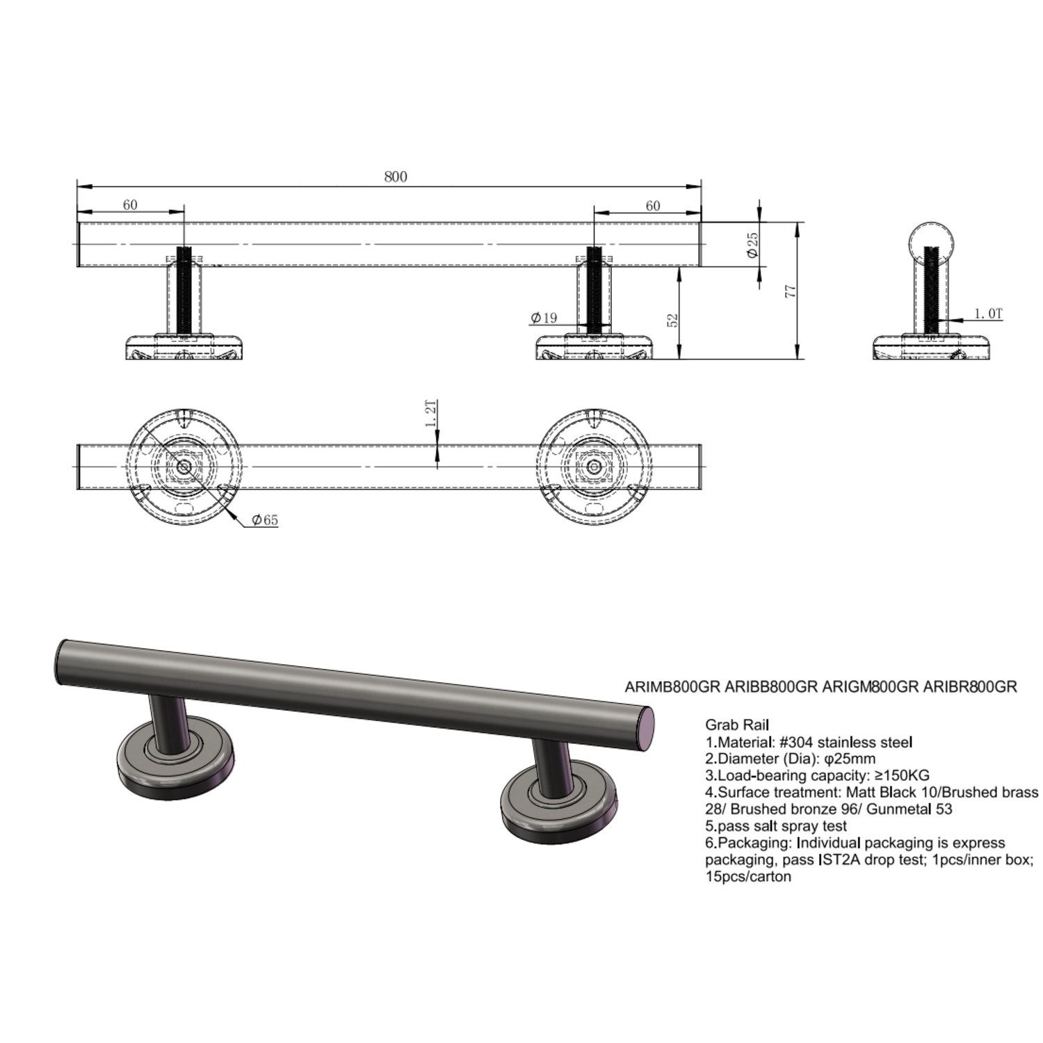 Safe & Strong: Supporting loads of up to 150kg, this grab bar gives reassurance and practicality for everyday use.