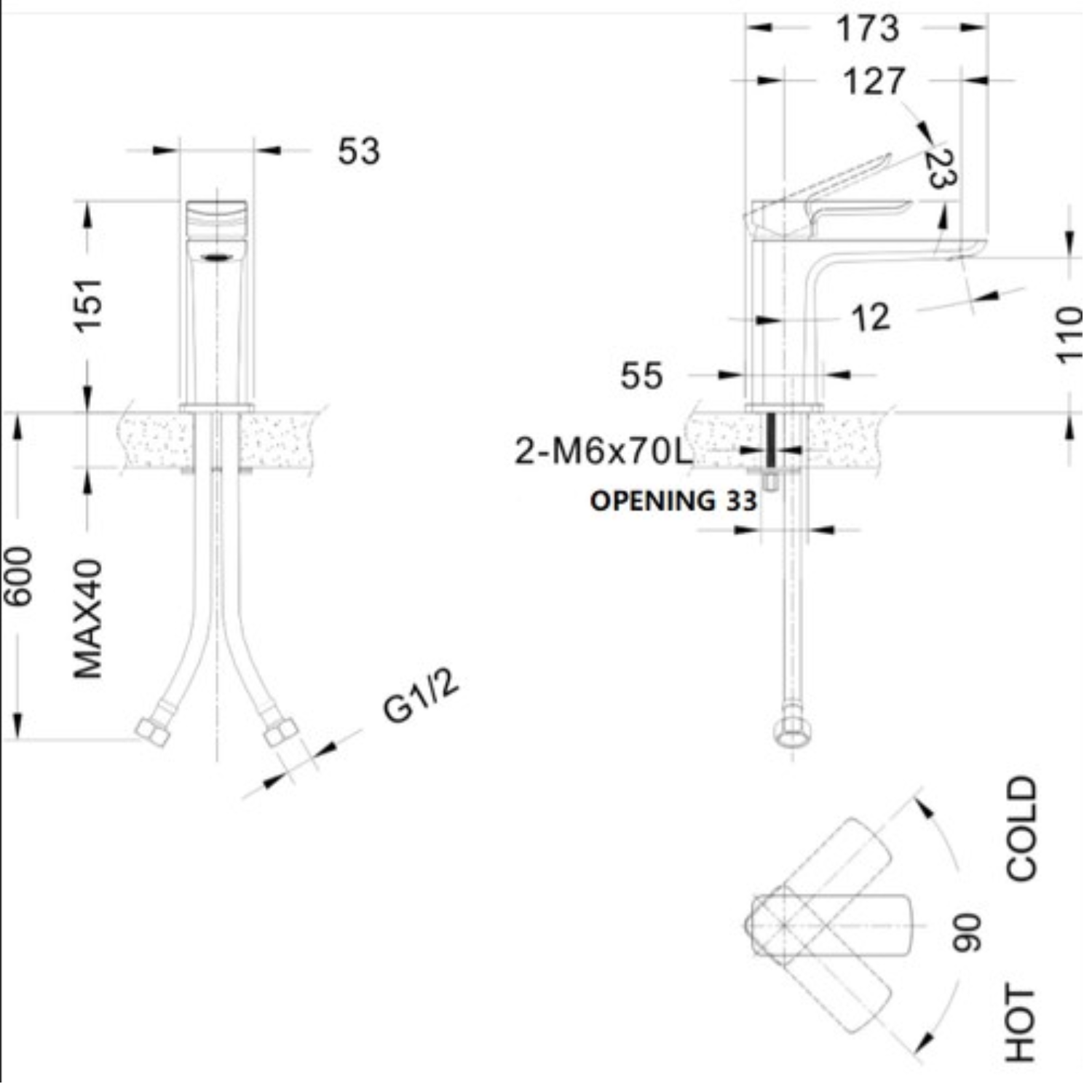 - Dimensions: H151 mm x W53 mm x D173 mm
