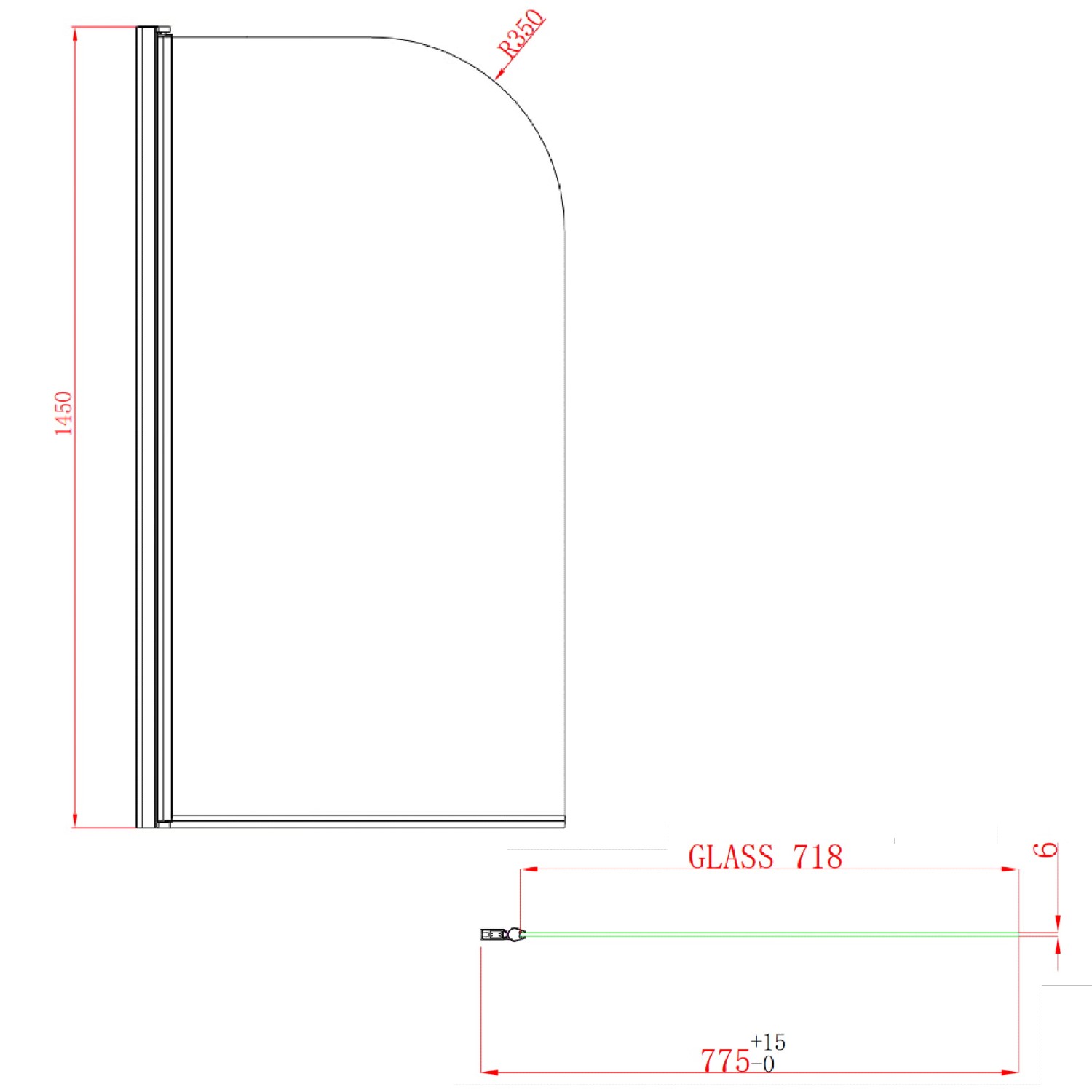 - Bath Screen Dimensions: H1450 x W775mm