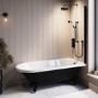 Elevate your bathroom with the Park Royal Black Freestanding Single Ended Shower Bath, a stylish blend of vintage character and modern performance. Its elegant roll-top form and black detailing make it a luxurious focal point, while the durable acrylic body ensures comfort and reliability. The easy-clean screen helps maintain a spotless look with minimal effort. With customisable tap placement and adjustable feet, this bath suits a range of spaces with ease. Complete with a full fitting kit and a 5-year warranty, it’s as practical as it is beautiful.