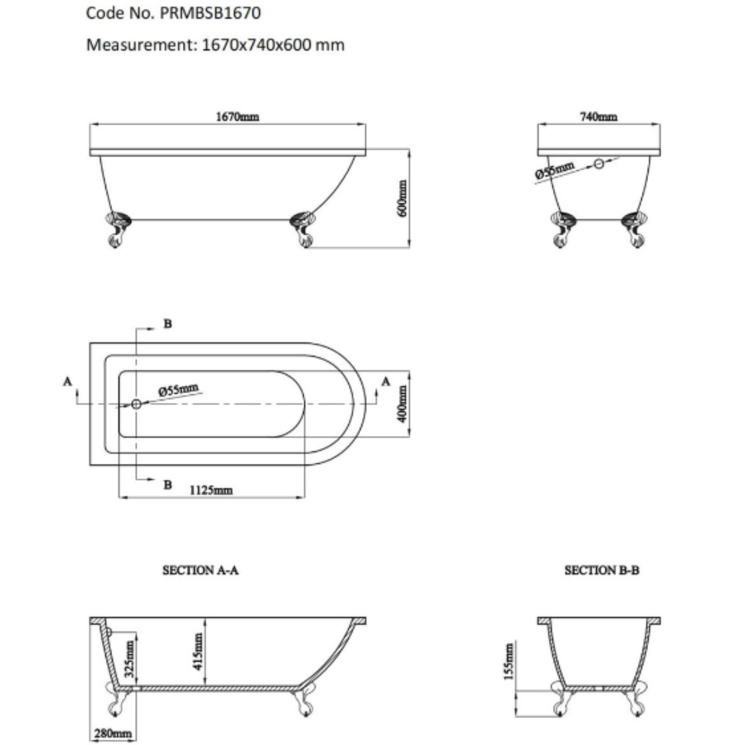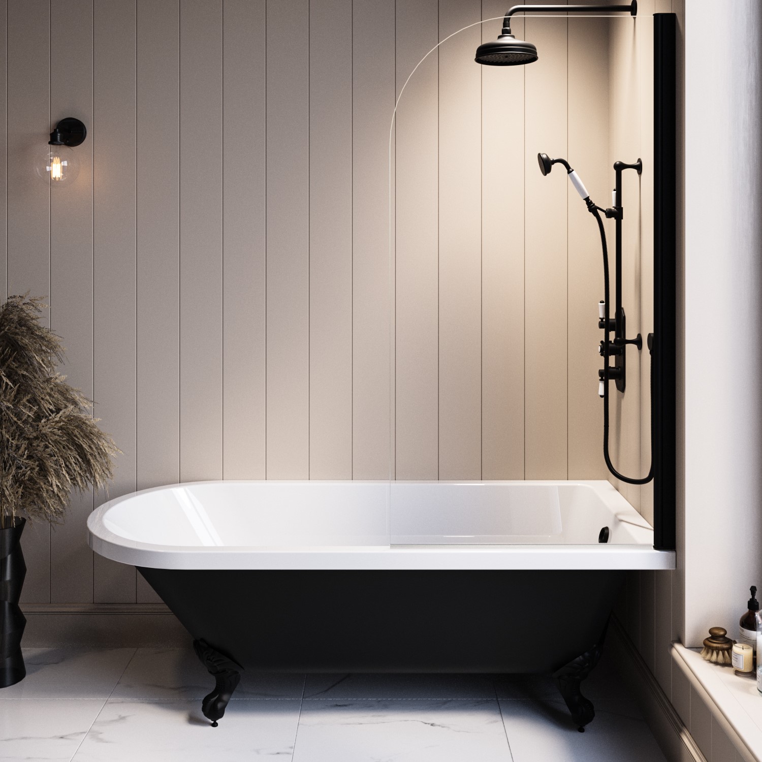 Black Detailing: Features matt black ball and claw feet and a coordinating black bath screen, which is movable 90 degrees inwards and outwards.