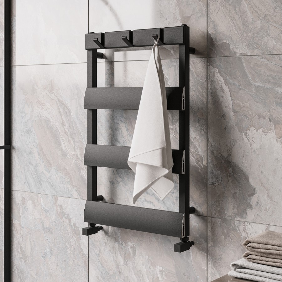 Multiple rails with built-in hooks: Features three broad heating bars and integrated hooks for drying multiple towels at once, with an even heat distribution.