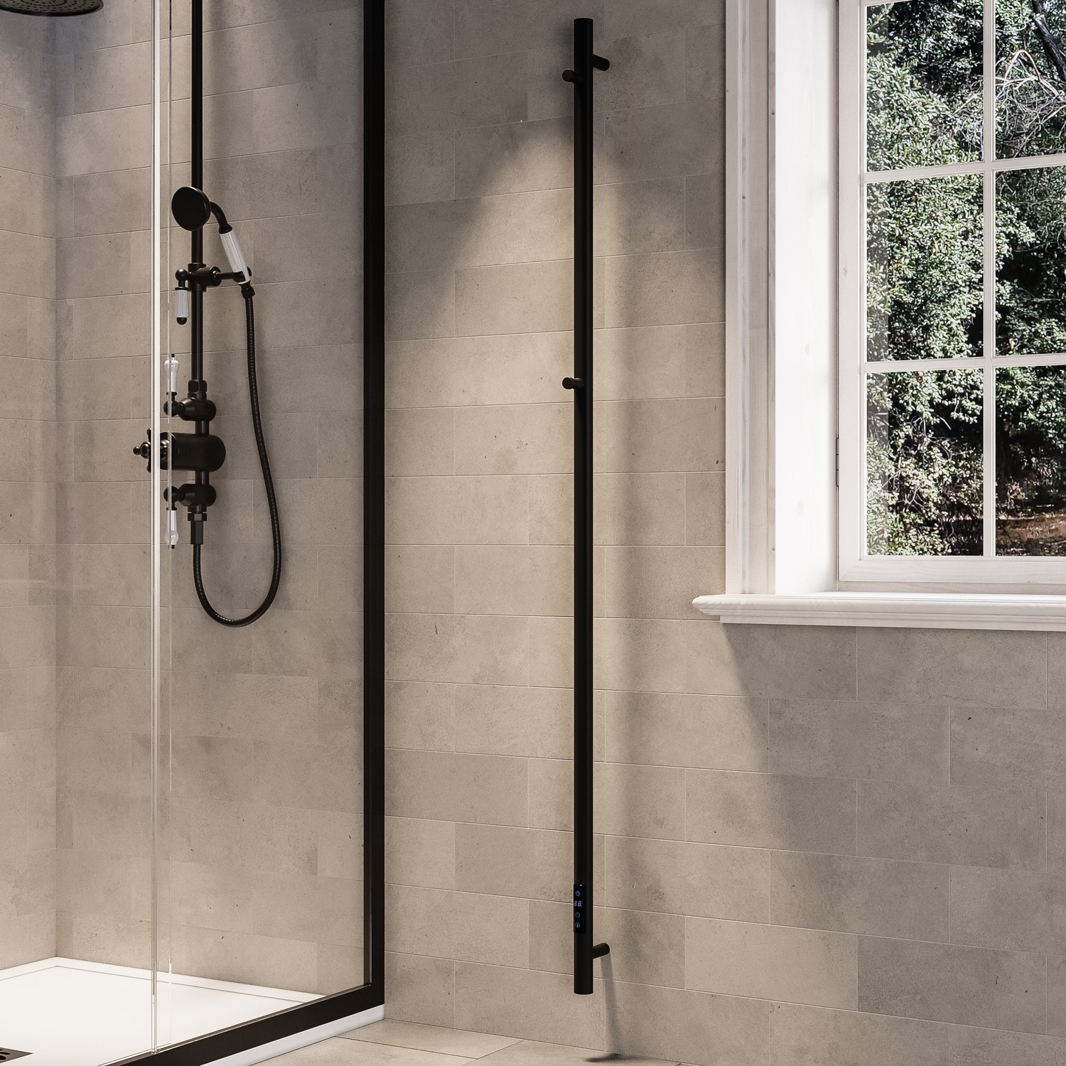 The Sagaro electric towel rail brings modern design and functionality together, making it an ideal addition to any bathroom or cloakroom. Its tall, ultra-slim vertical design fits seamlessly into narrow wall spaces, making it perfect for en-suites or cloakrooms. The wall-mounted design ensures space efficiency, while the matt black finish adds a sleek, high-end aesthetic. The stainless steel build guarantees durability, and the digital touch display allows for easy control of temperature settings and timing, so you can enjoy warm towels and a cosy bathroom environment. Finished in a modern brushed brass, it balances form and function – and with two built-in hooks, it’s just as practical for drying towels as it is for warming the room.