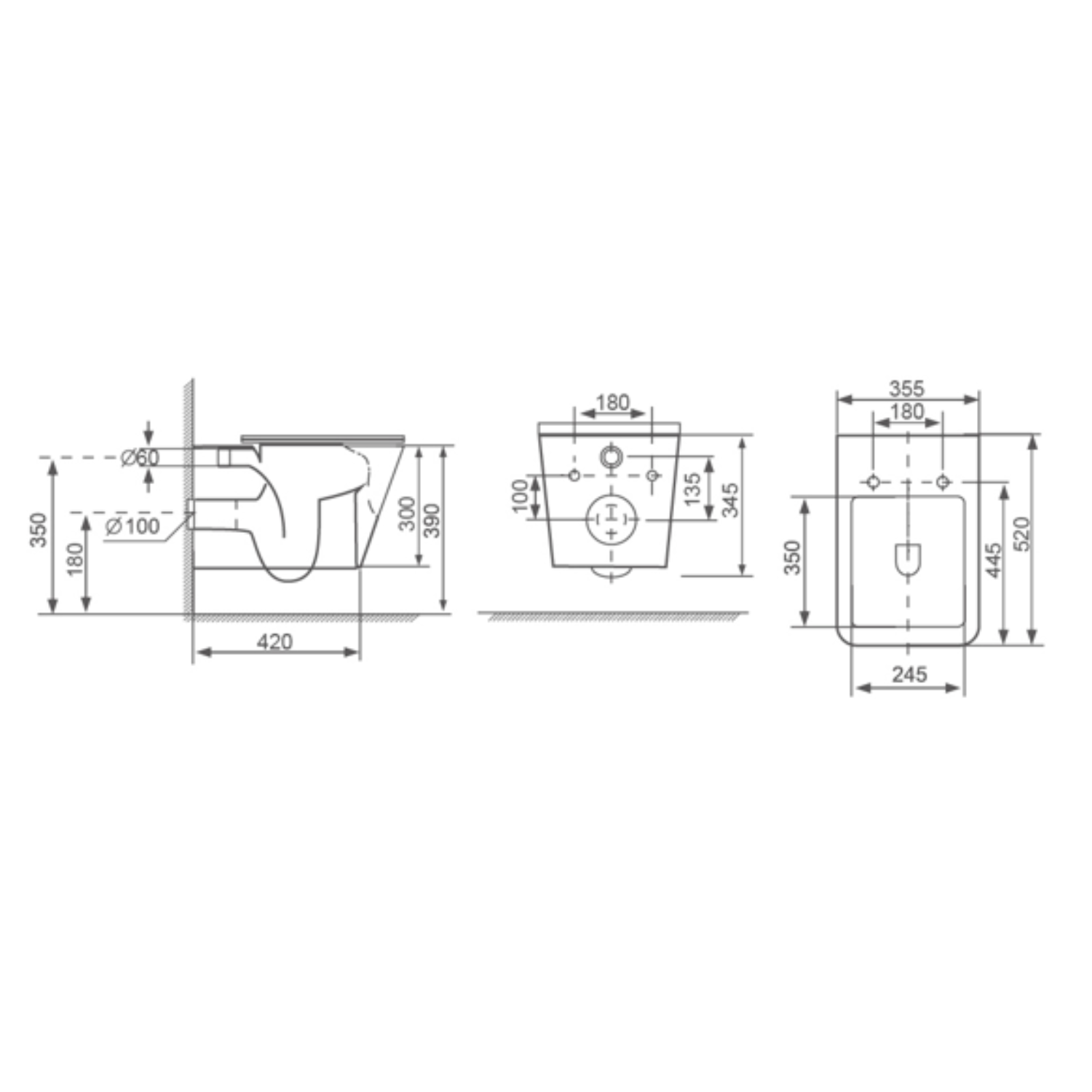 - Mounting type: Wall hung