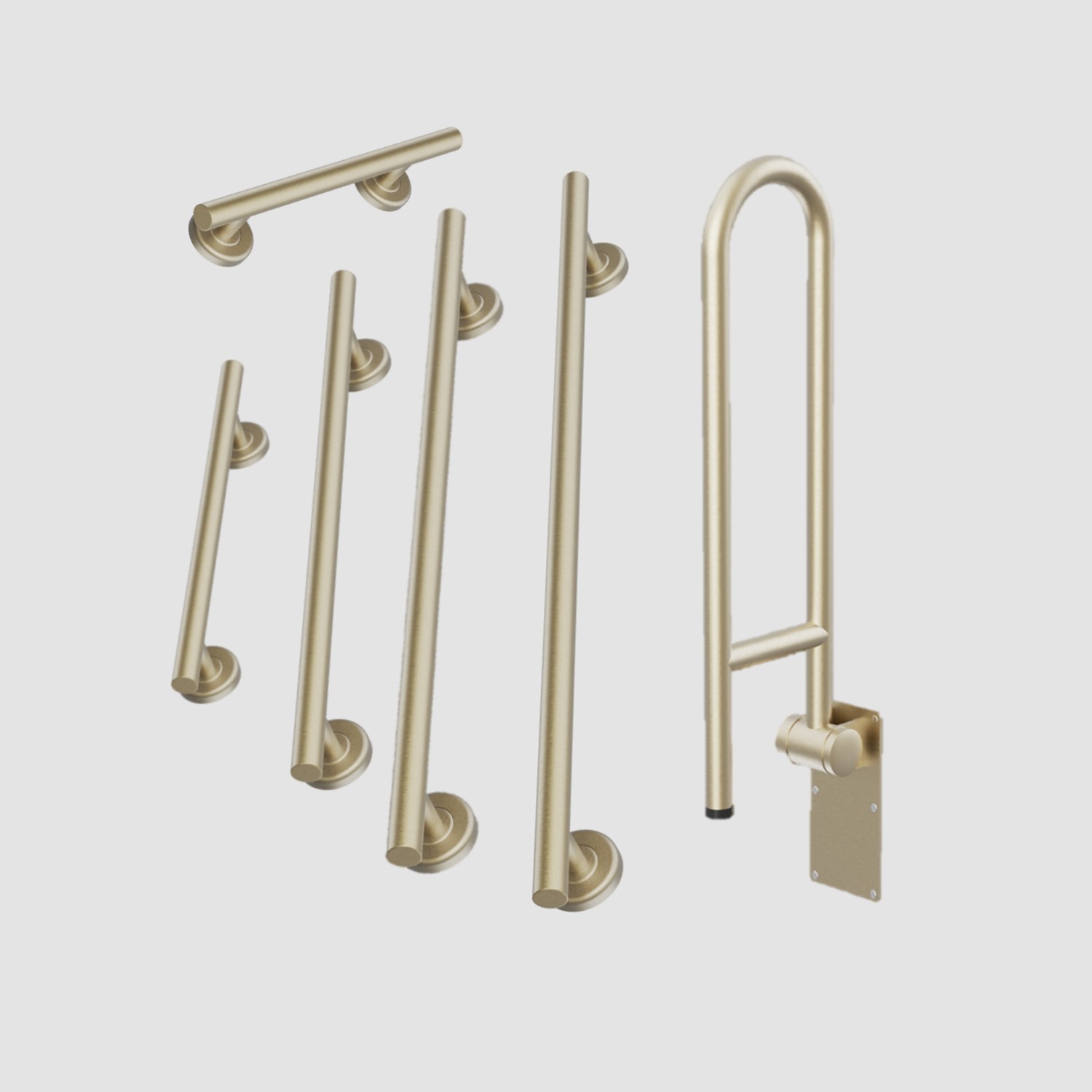 Whether used as a toilet grab bar, shower grab rail, or bath support, this collection enhances accessibility and support across key areas of the bathroom. Made from robust stainless steel with a powder-coated brushed brass finish, the rails offer excellent durability, water resistance, and protection against corrosion. The sleek, modern design blends effortlessly with a wide range of interiors, providing reliable, discreet support exactly where it’s needed most.
