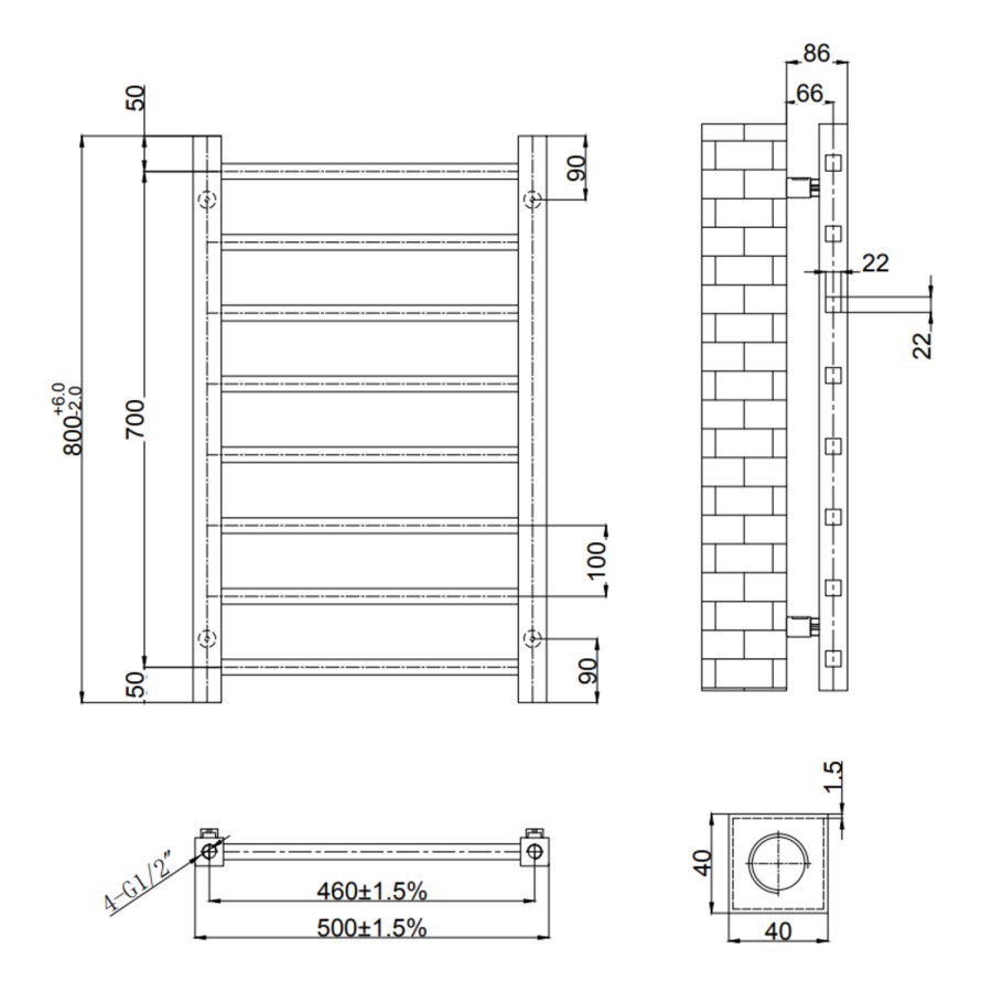 - Radiator Dimensions: H800 x W500 x D86mm