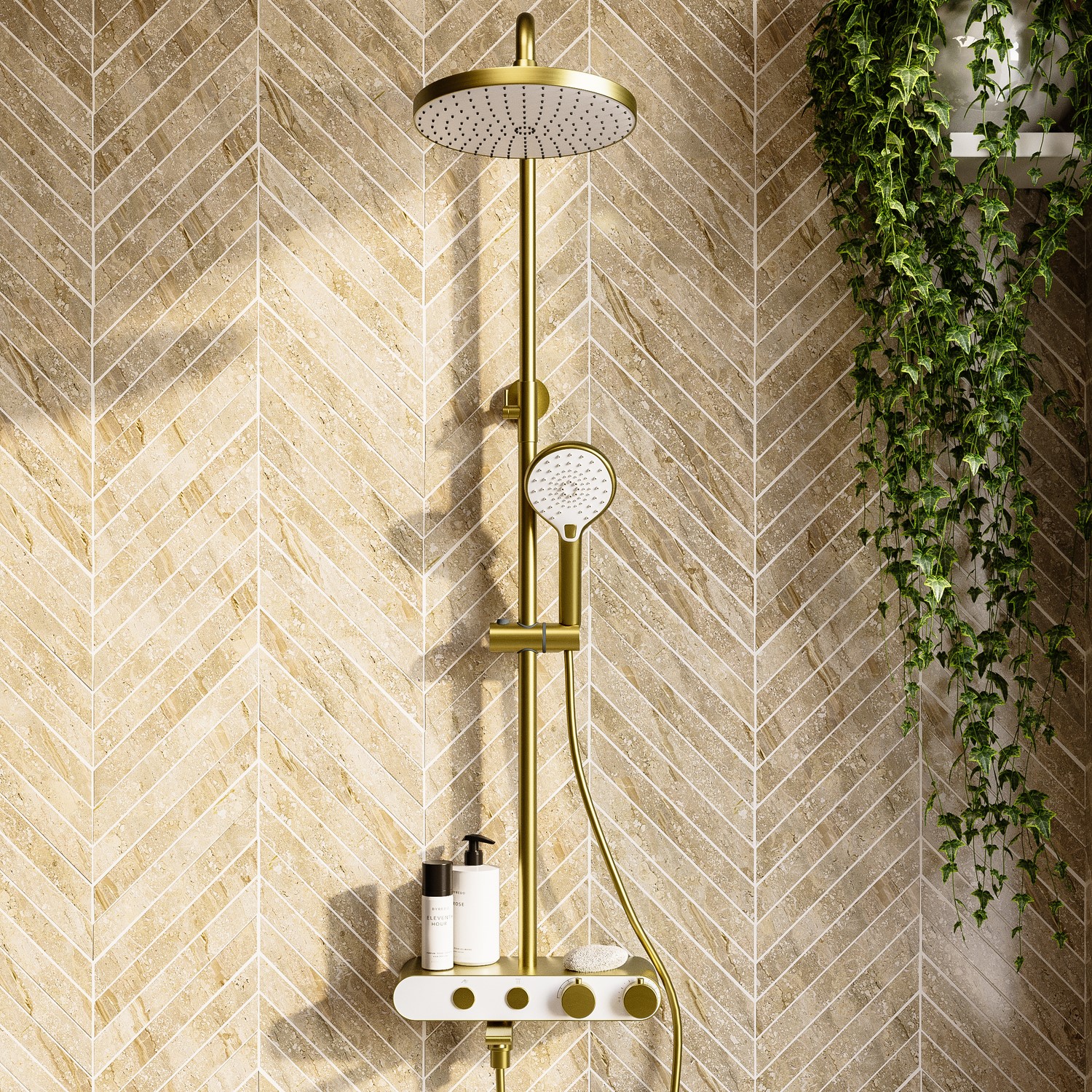 The Brushed Brass Exposed Thermostatic Shower System combines bold contemporary style with everyday practicality, making it a smart upgrade for any bathroom. Crafted from durable brass with a brushed brass PVD finish, it’s designed to withstand daily use while keeping its premium look for years. This product has a PVD coating, which is highly durable and is resistant to wear and tarnishing. Following the user manual for cleaning and maintenance helps the finish to remain like new! The warm brushed brass tone adds a luxurious, on-trend look that elevates your bathroom decor.