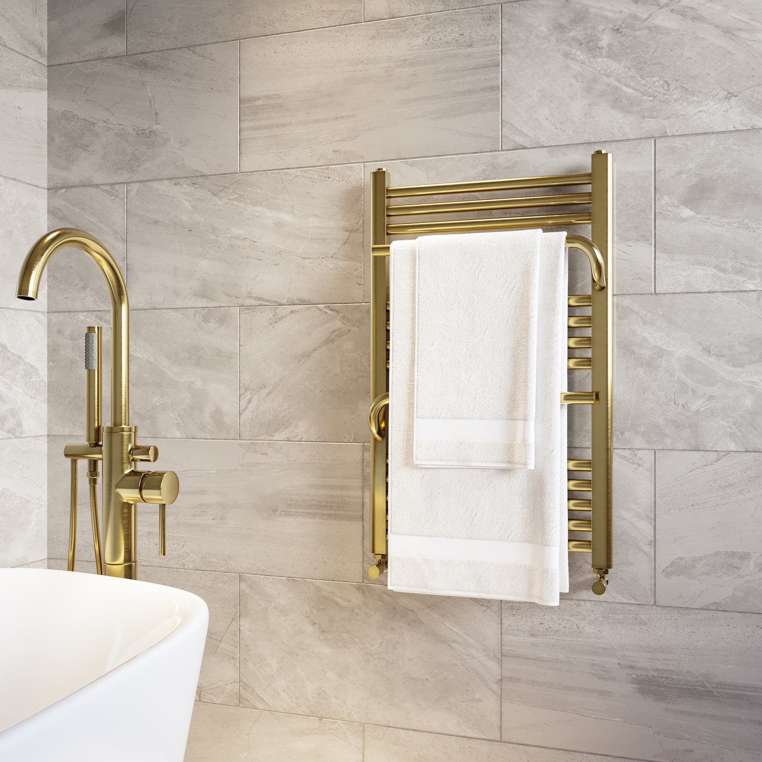 Sleek Brushed Brass Finish: Combined with a vertical design, it adds a sophisticated statement to any bathroom.