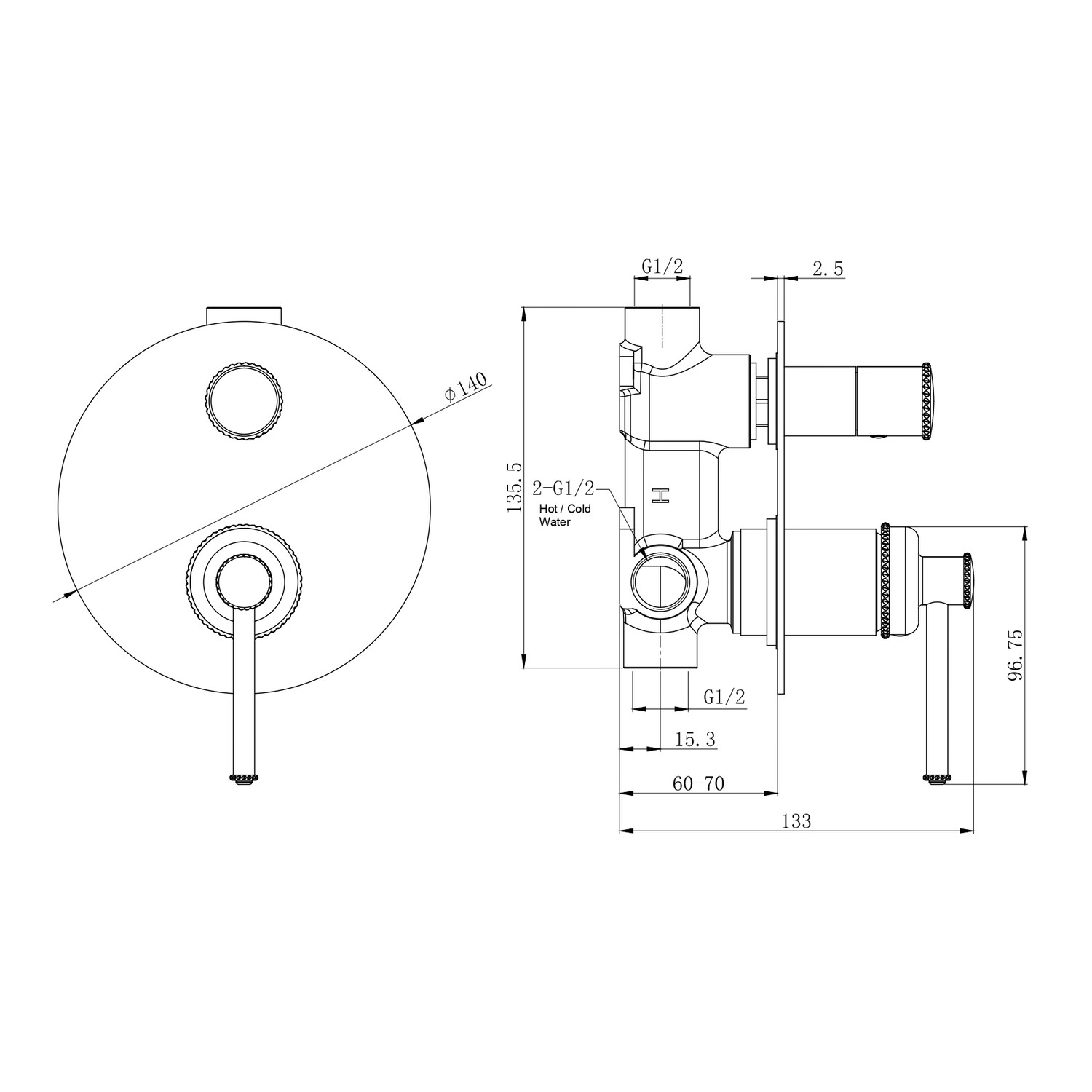 Dual Outlet Concealed Valve: This two-outlet concealed valve is designed for wall-mounted installation, to pair with our wide range of shower outlets, including shower heads, handsets or spouts. Use the lever to mix the hot and cold water for your desired temperature.