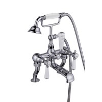 - Deck Mounted Bath Mixer and Shower Head with traditional style handles